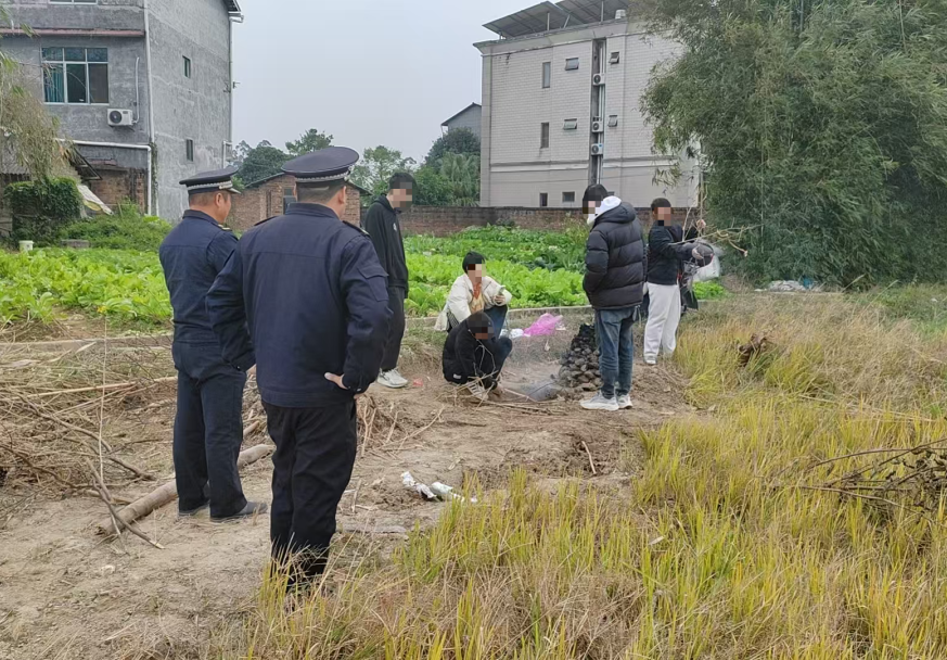 12月21日,执法人员在长安镇余家寨劝阻未成年人户外窑鸡行为