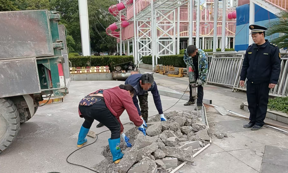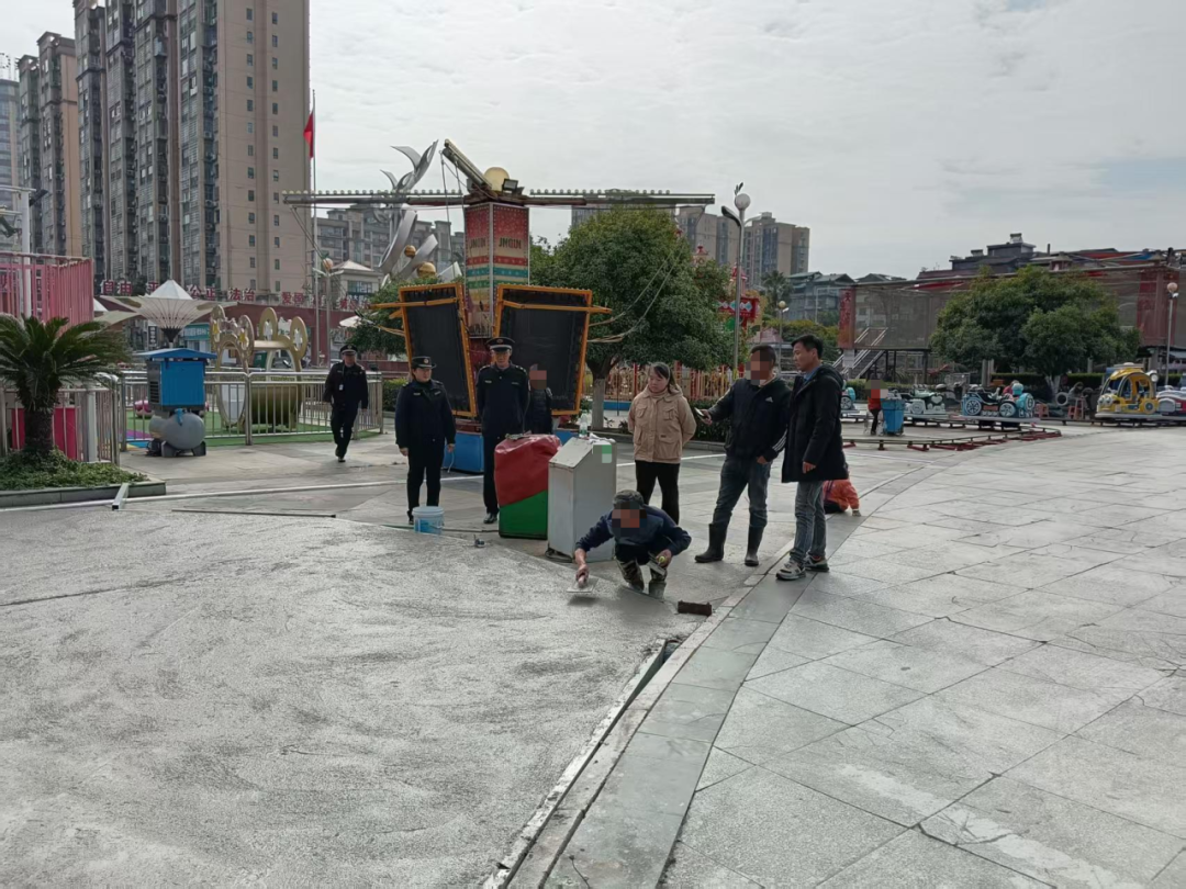 为规范城市公共空间管理、保障市民出行安全,融安县综合行政执法局始终对违法建设行为保持“零容忍”态势,近日快速处置了长安广场一处游乐设施场地未经审批违规硬化水泥地的违法行为,及时消除安全隐患,恢复公共区域原有秩序。