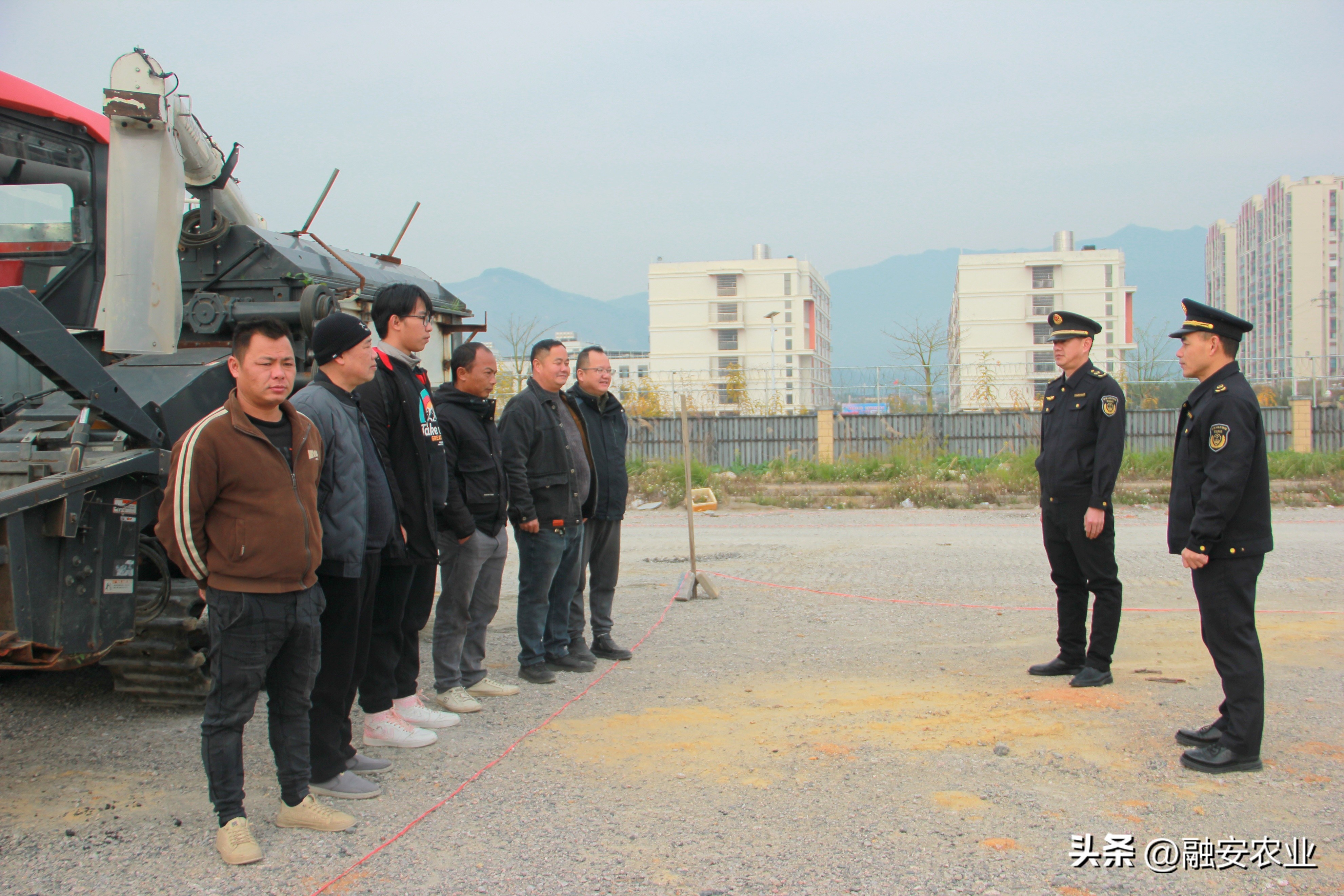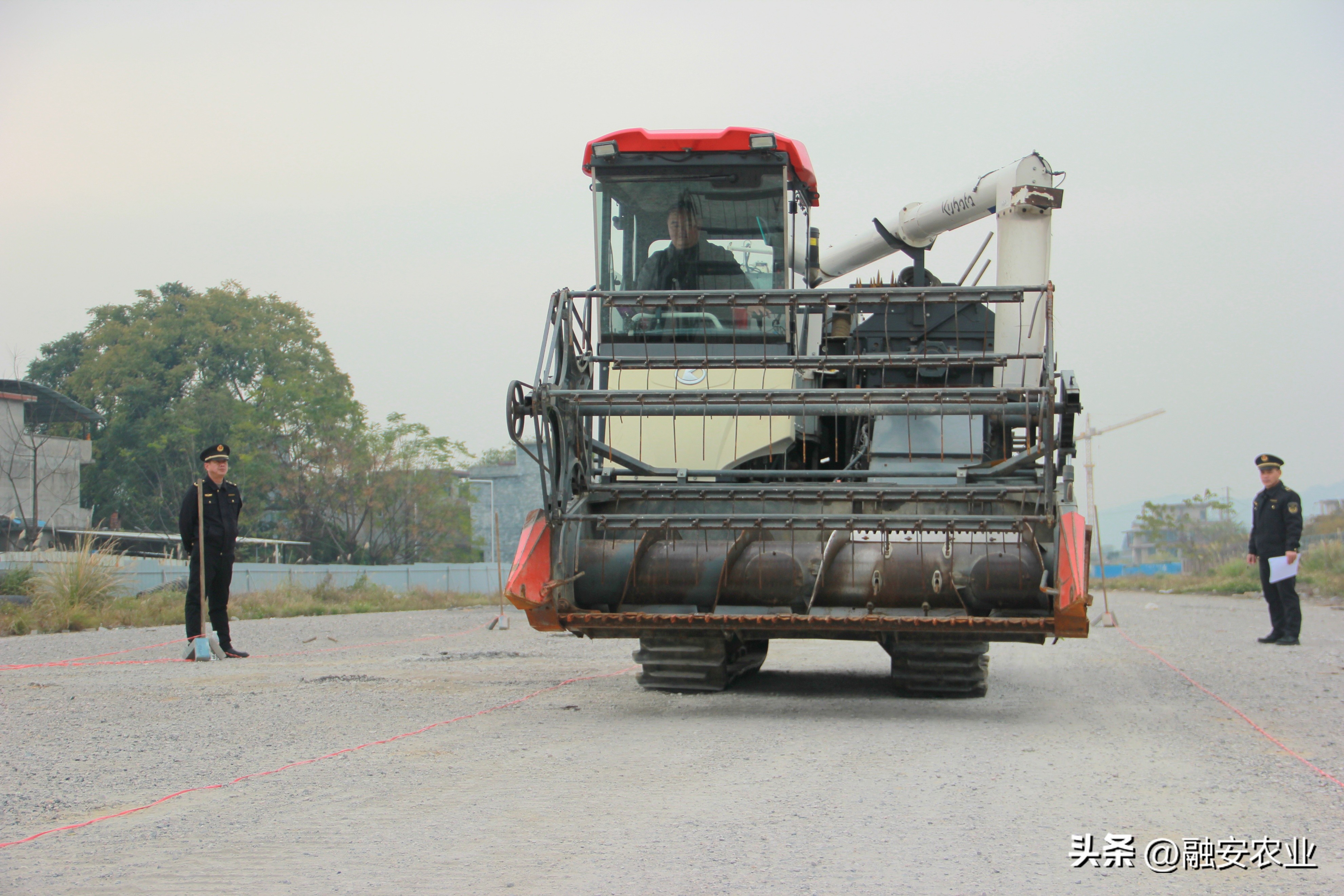 融安县农业农村局农机校以及农机执法中队在长安镇新安村开展联合收割机驾驶员培训考试