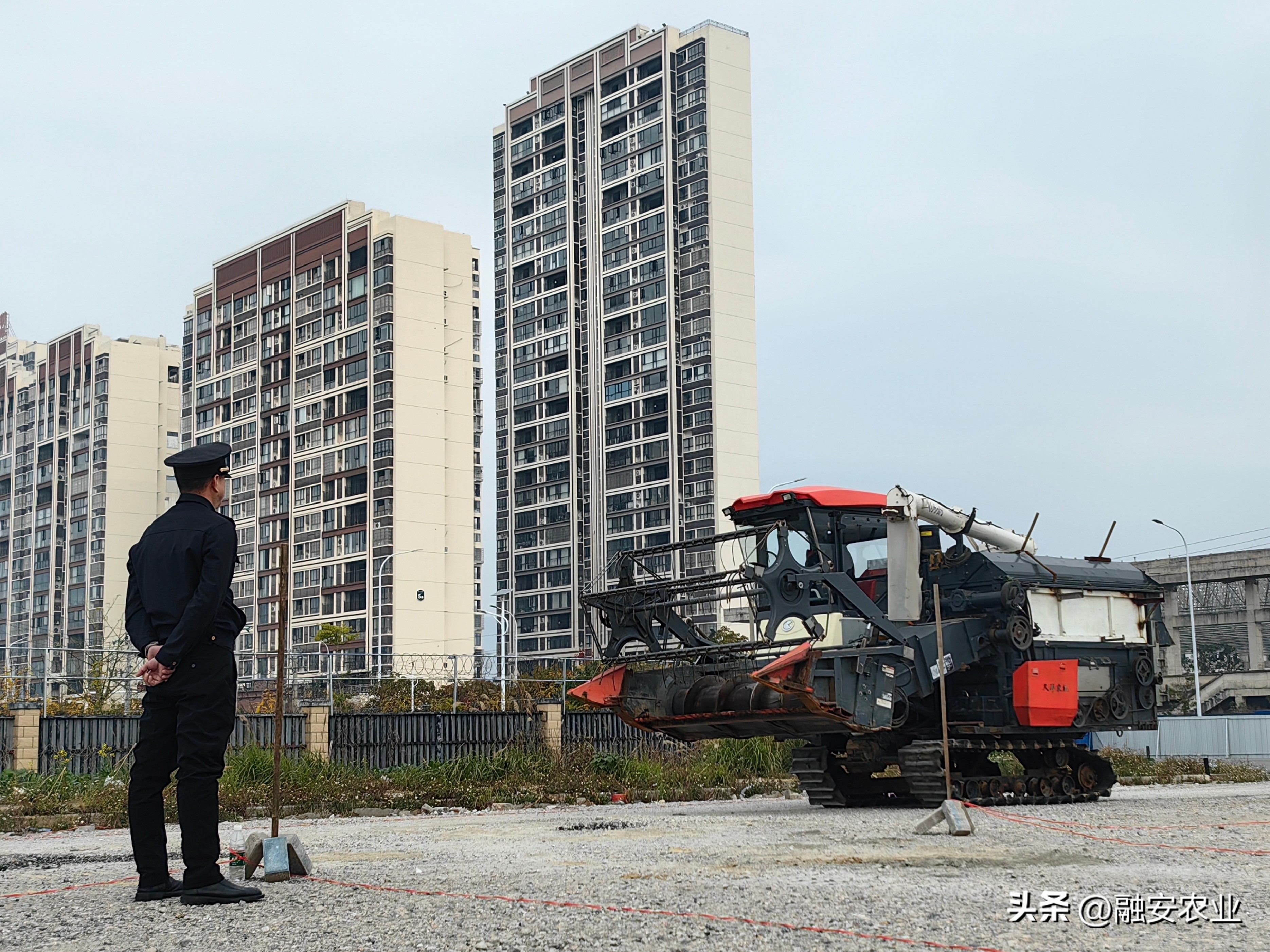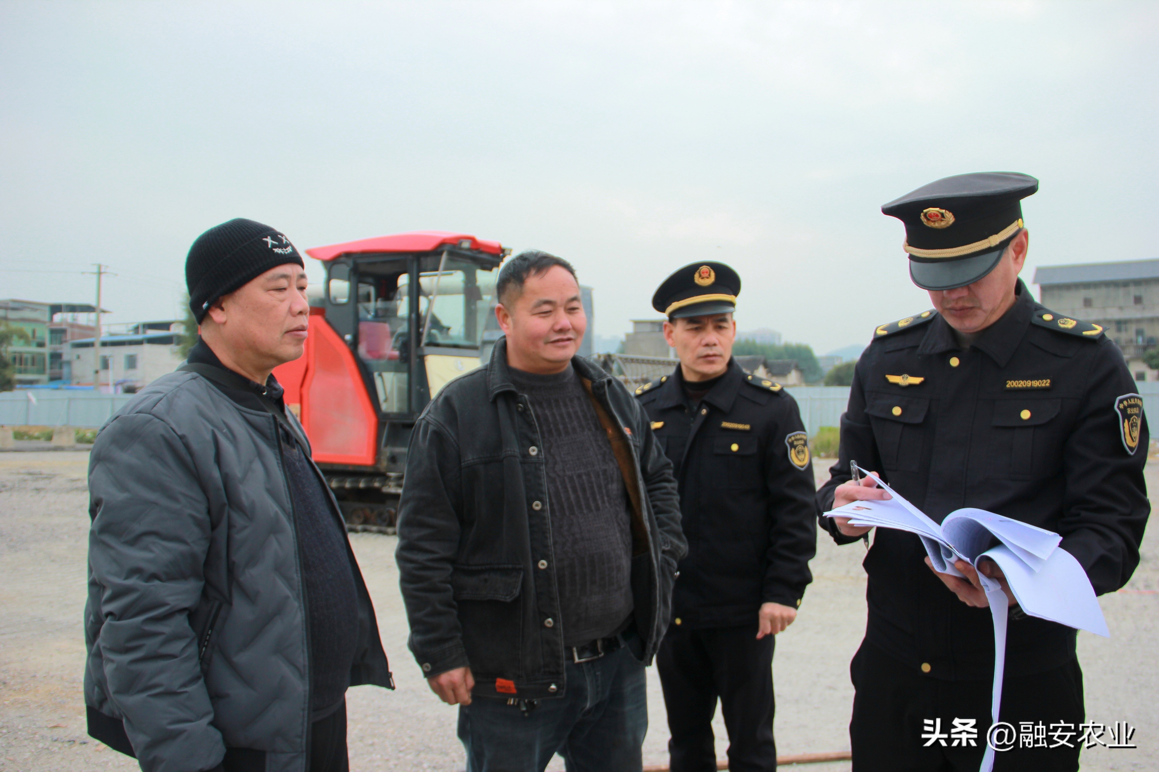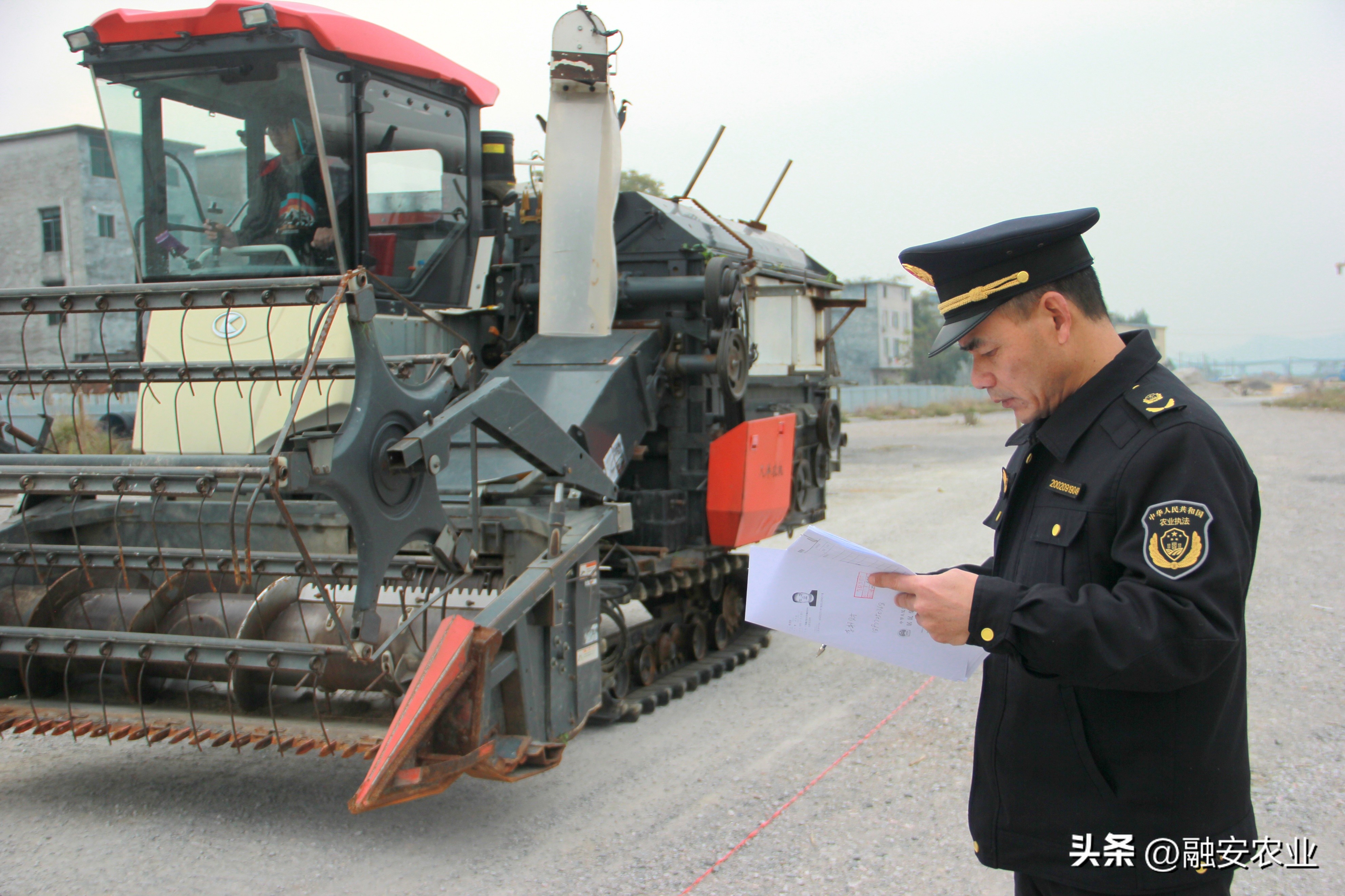 融安县农业农村农机执法中队执法人员在对参加联合收割机驾驶考试的学员进行监考