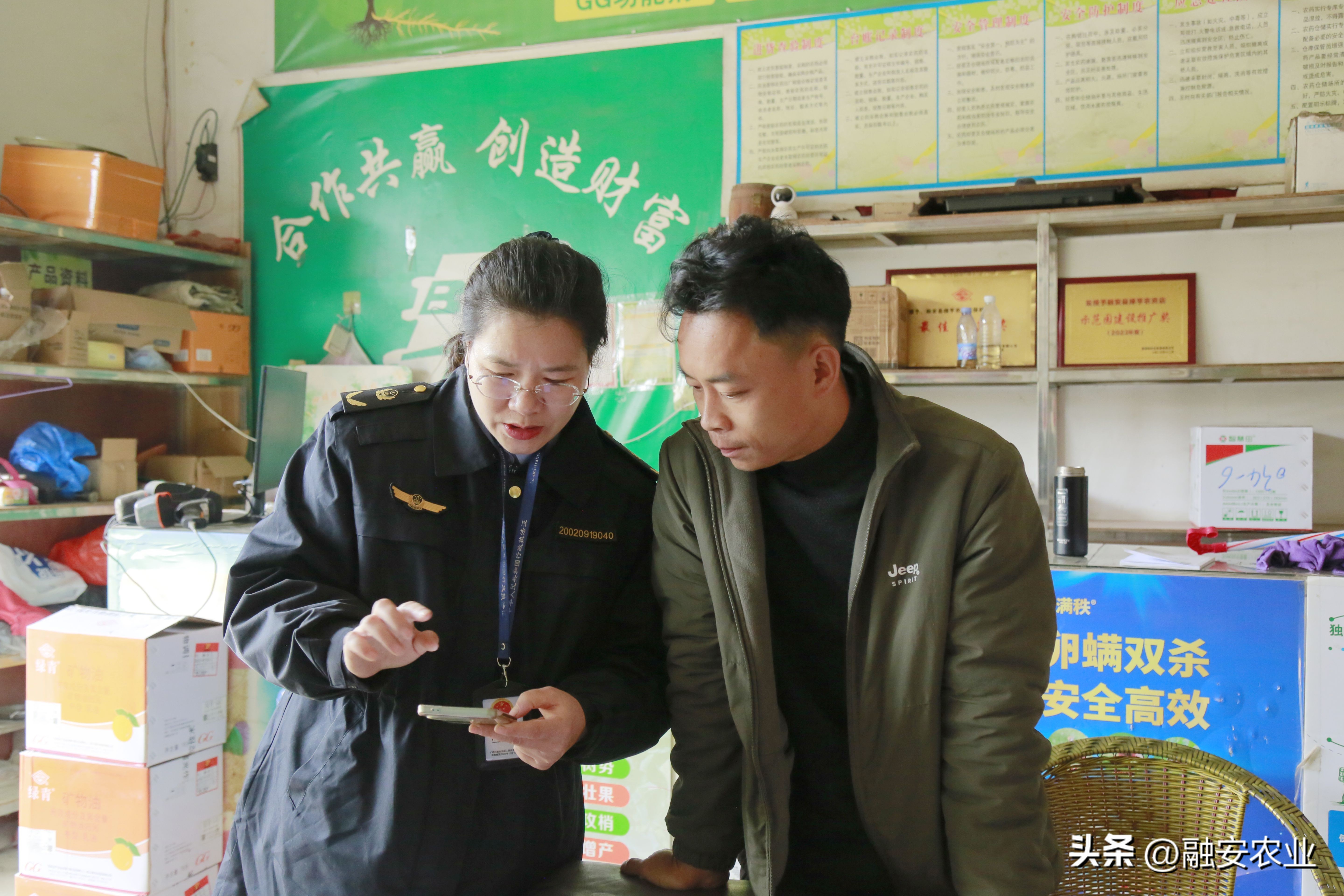 3月20日,为切实保障春耕生产顺利开展,规范农资市场经营秩序,保障春耕生产农资供应,筑牢农产品质量安全防线,融安县农业农村局农业综合行政执法大队种植业中队深入长安镇各农资经营门店,开展农资市场专项检查与安全宣传工作。