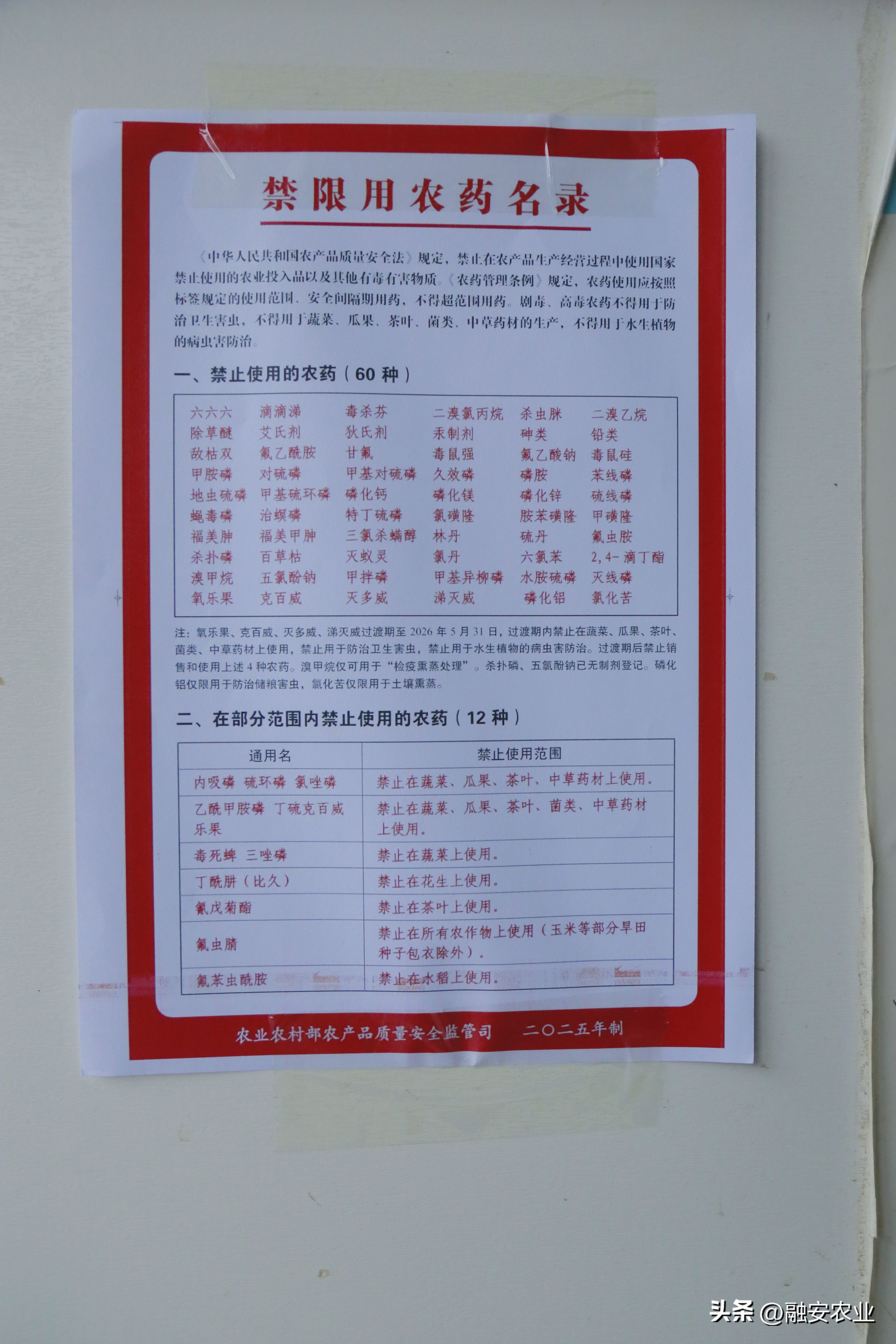 农资店张贴的禁限用农药名录