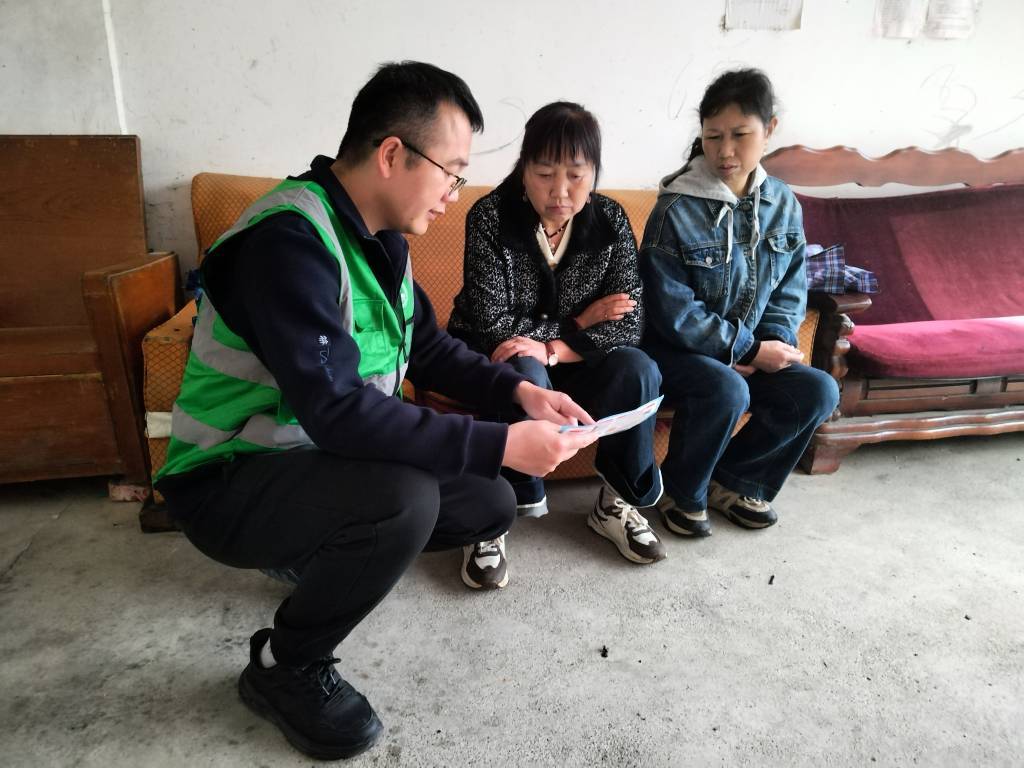 图2:泗顶矿区管理处禁毒工作人员仔细向老人家讲解毒品的种类与危害(谭雁玲 摄)