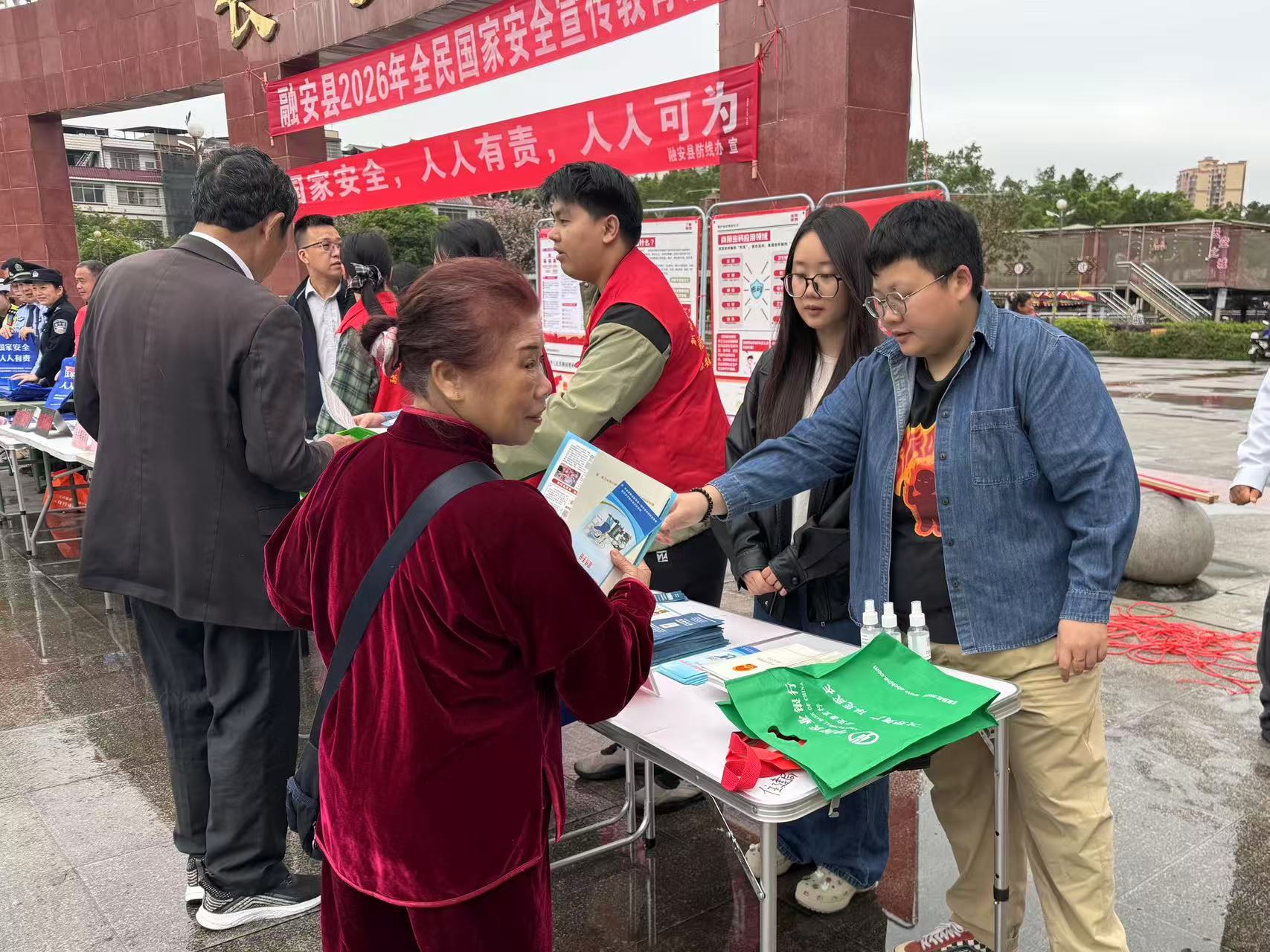 4月15日,是第十一个全民国家安全教育日,活动主题为“统筹发展和安全,护航‘十五五’新征程”。为深入贯彻总体国家安全观,普及国家安全法律法规,增强全民国家安全意识,4月15日上午,融安县住房和城乡建设局在融安县长安广场东门开展宣传活动,以实际行动传递住建温度、筑牢安全防线。