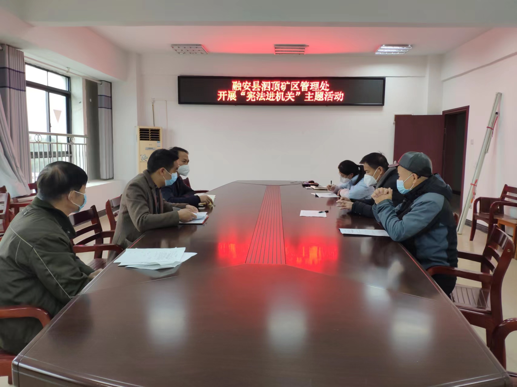 2022年12月8日,为深入学习贯彻党的二十大精神,学习贯彻习近平新时代中国特色社会主义思想、习近平法治思想和习近平总书记关于宪法的重要论述,泗顶矿区管理处直属党支部组织开展“宪法进机关”主题活动。