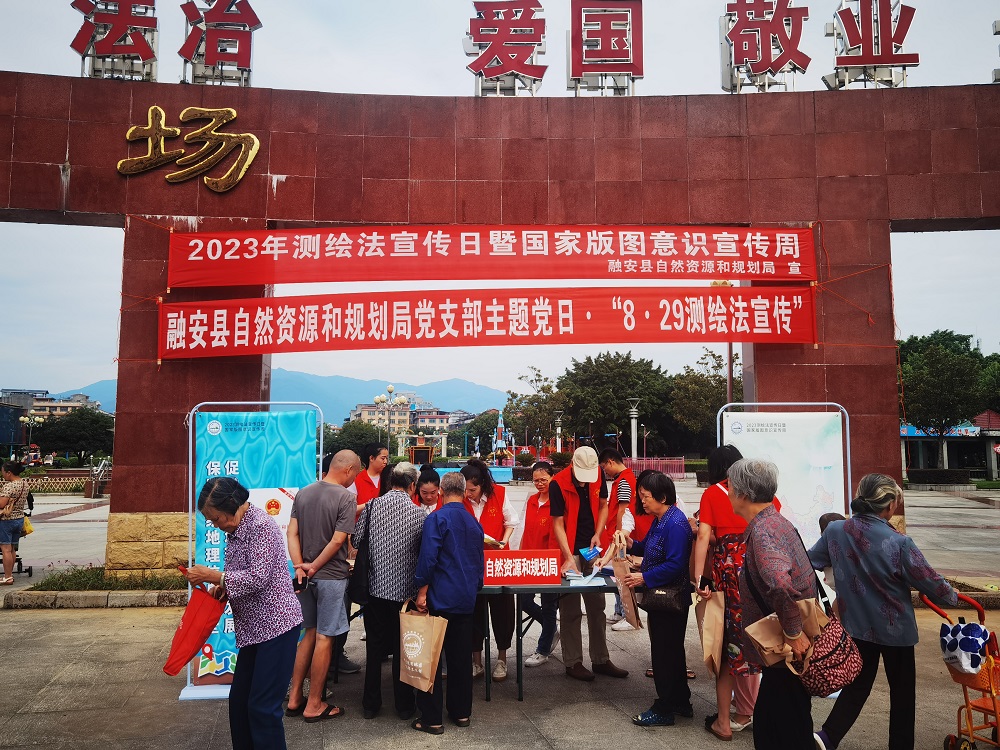 今年是第二十个全国测绘法宣传日,为进一步加强测绘法律知识的宣传,强化公民国家版图意识、倡导规范使用地图,提高群众对国家疆域的认知、自觉维护对永久性测量标志保护的意识,融安县自然资源和规划局在长安广场开展2023测绘法宣传日暨国家版图意识宣传周活动。
