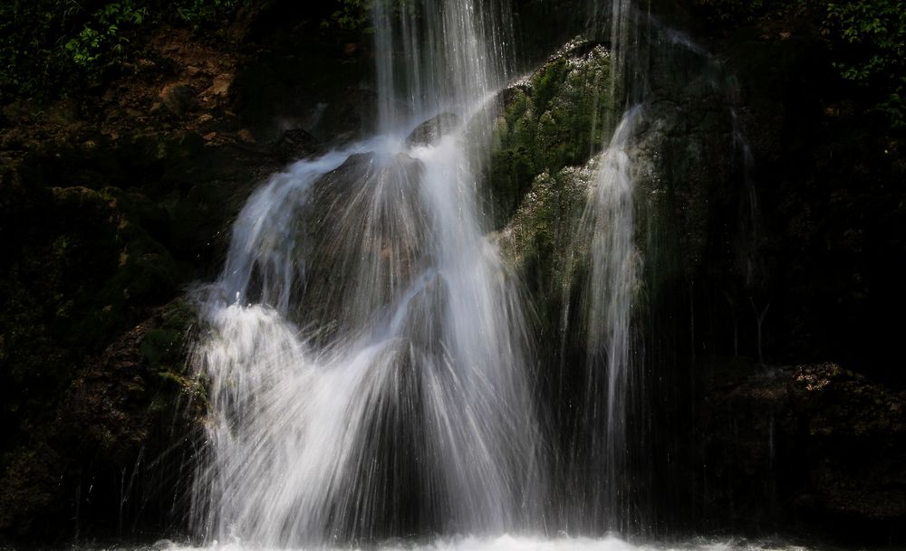 融安县泗顶镇山贝村清潭瀑布群,位于融安县泗顶镇山贝村中村屯的大山中间,与山水甲天下的桂林紧紧接壤,是典型的喀斯特地貌地区,大小分布着数十个小瀑布,瀑布群宽约40米,高60多米,远观如林间白丝带,在阳光的照耀下熠熠增辉,近看,排山倒海,汹涌澎湃,一泻千里,深山飞瀑犹如天上银河飞落九天,壮观的景色吸引大批游客前来观赏。