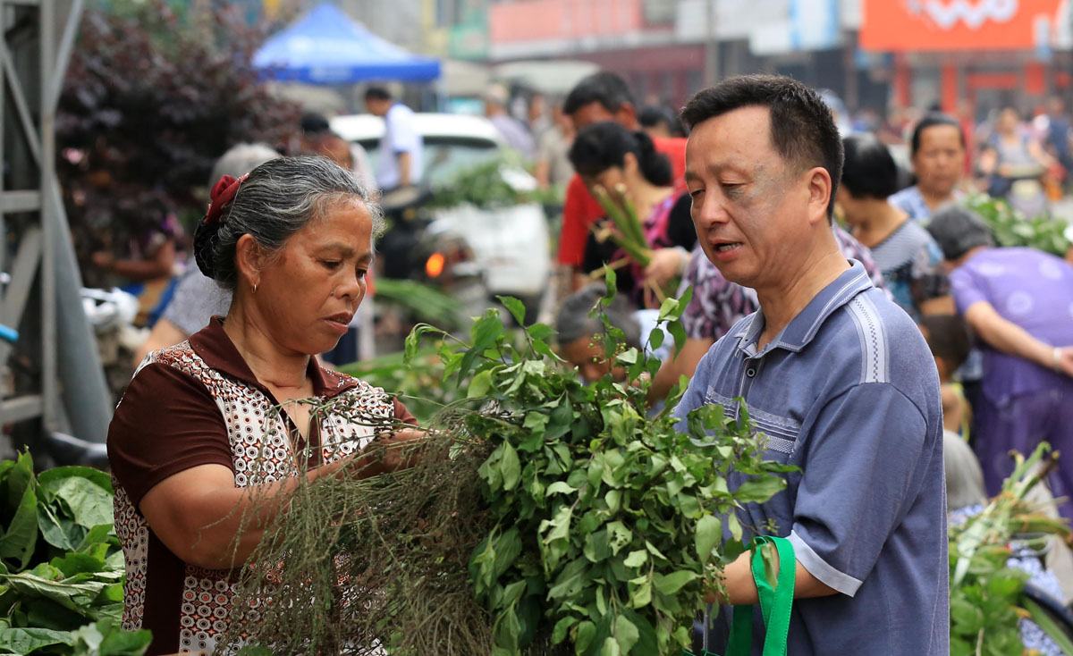 图5:6月2日,在融安县长安镇,居民在选购中草药。