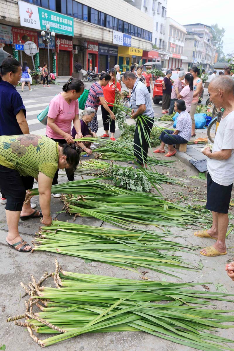 图7:6月2日,在融安县长安镇立新街,群众在挑选艾草、菖蒲。