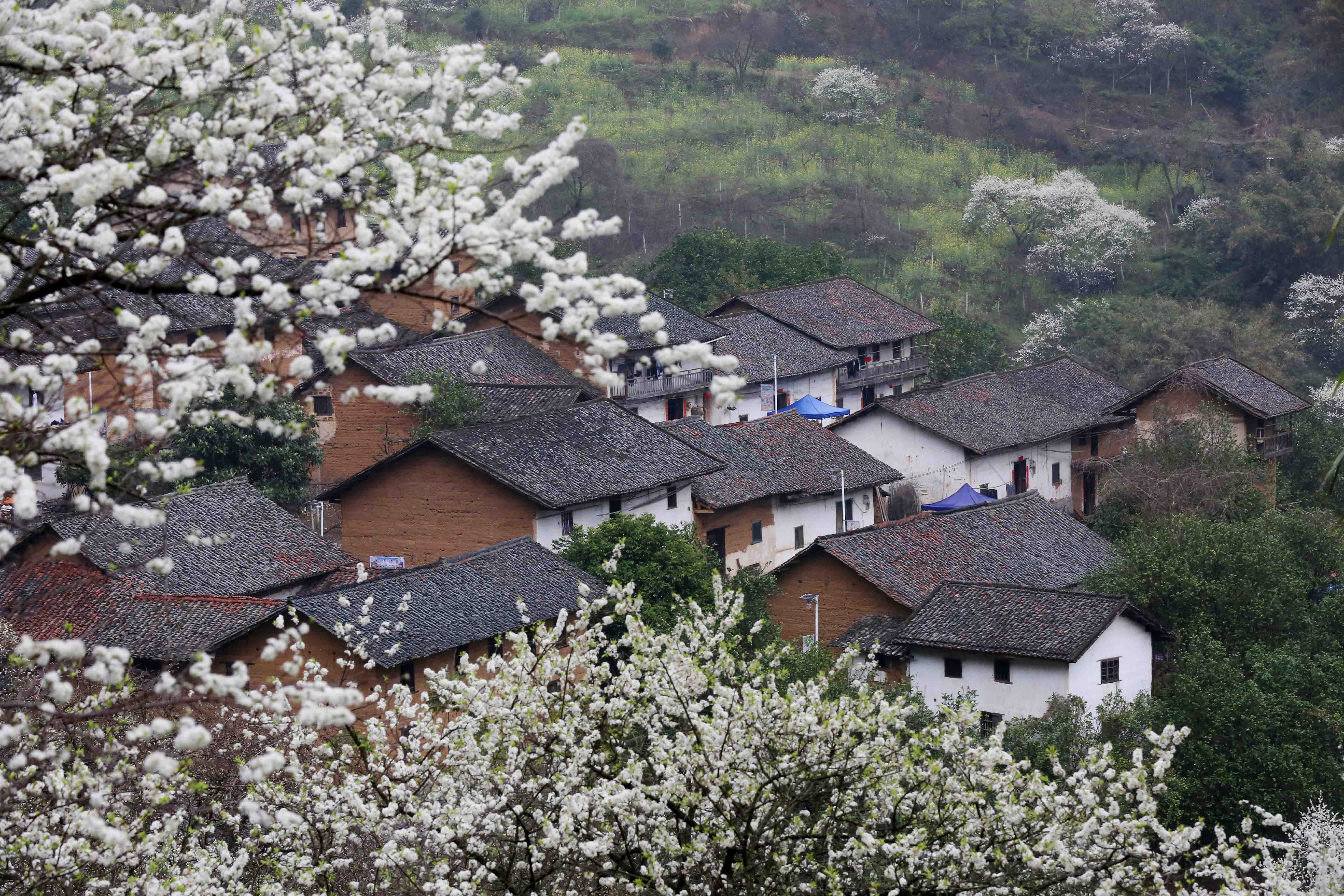 图1:3月4日,拍摄的淹没在李子花海中的融安县东起乡铜板屯美景。