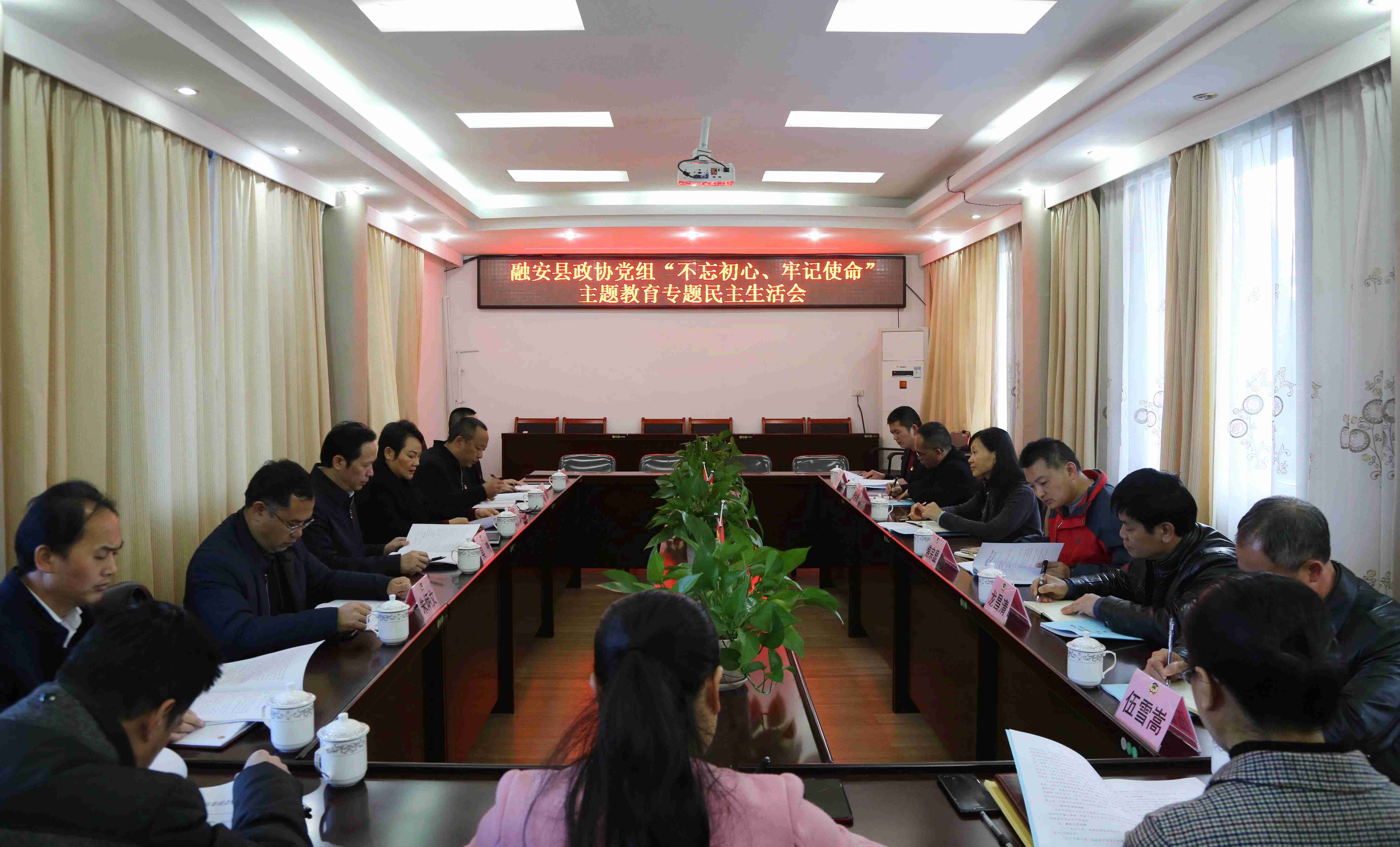 12月10日,融安县政协党组召开“不忘初心、牢记使命”主题教育专题民主生活会。会议紧扣学习贯彻习近平新时代中国特色社会主义思想,聚焦“不忘初心、牢记使命”这一主题,突出力戒形式主义、官僚主义等重要内容,围绕理论学习有收获、思想政治受洗礼、干事创业敢担当、为民服务解难题、清正廉洁作表率的目标,盘点收获、检视问题、深刻剖析。