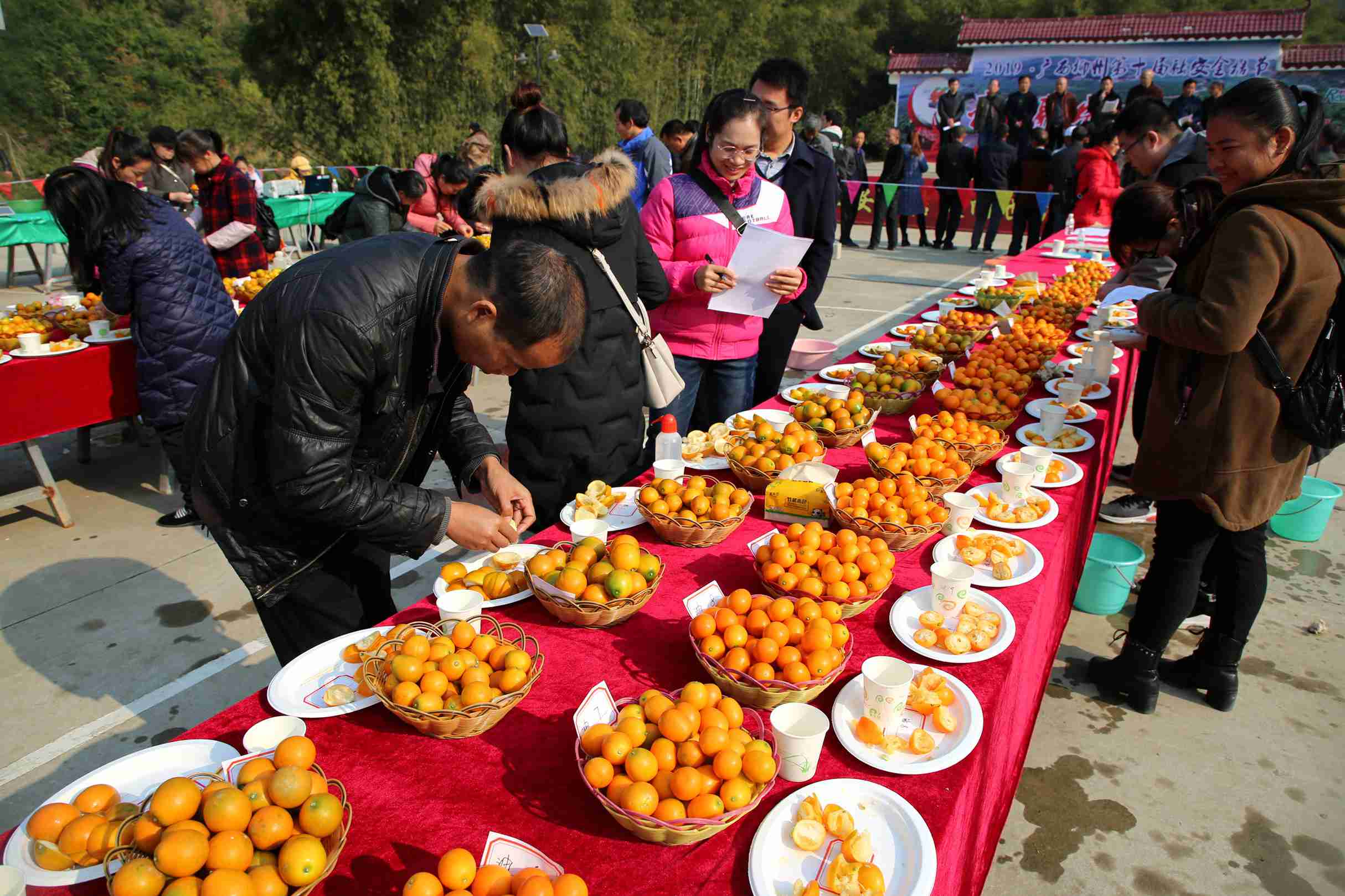 12月13日,在“融安金桔”原产地融安县大将镇大将社区三马屯,2019广西柳州第十届融安县金桔节“我是融安金桔王”擂台赛初赛在这里举行。