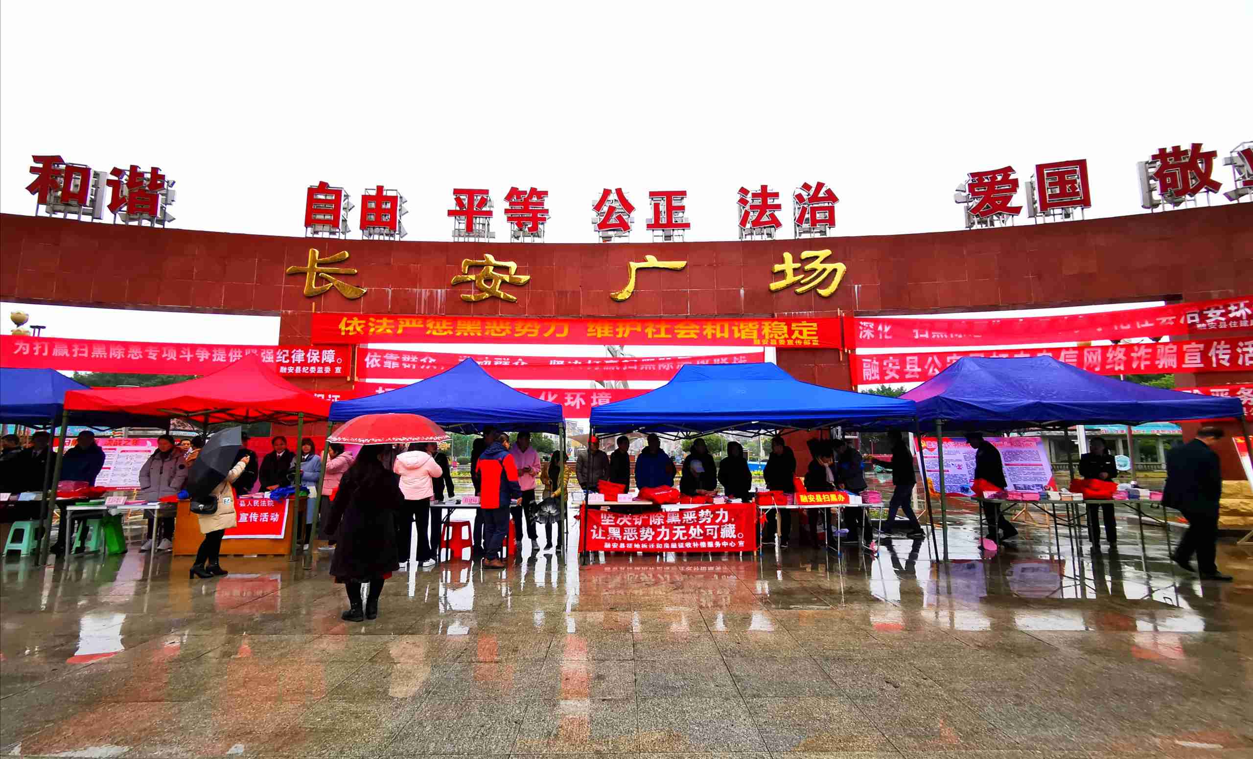 11月25日,在融安县长安广场拍摄的2020年扫黑除恶专项斗争集中宣传活动现场。(卫纲 摄)