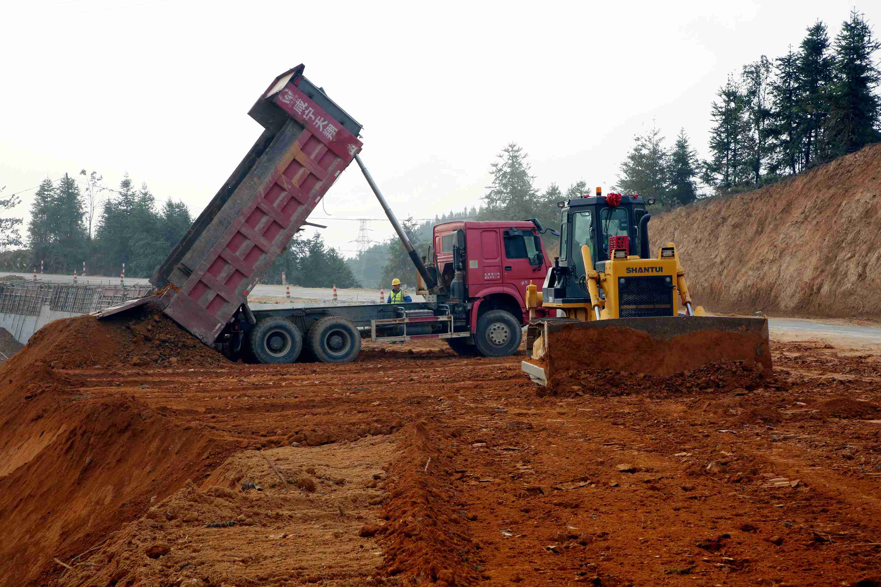11月30日,在融安县浮石镇,G357永福百寿至融安浮石二级公路项目正在加快施工。