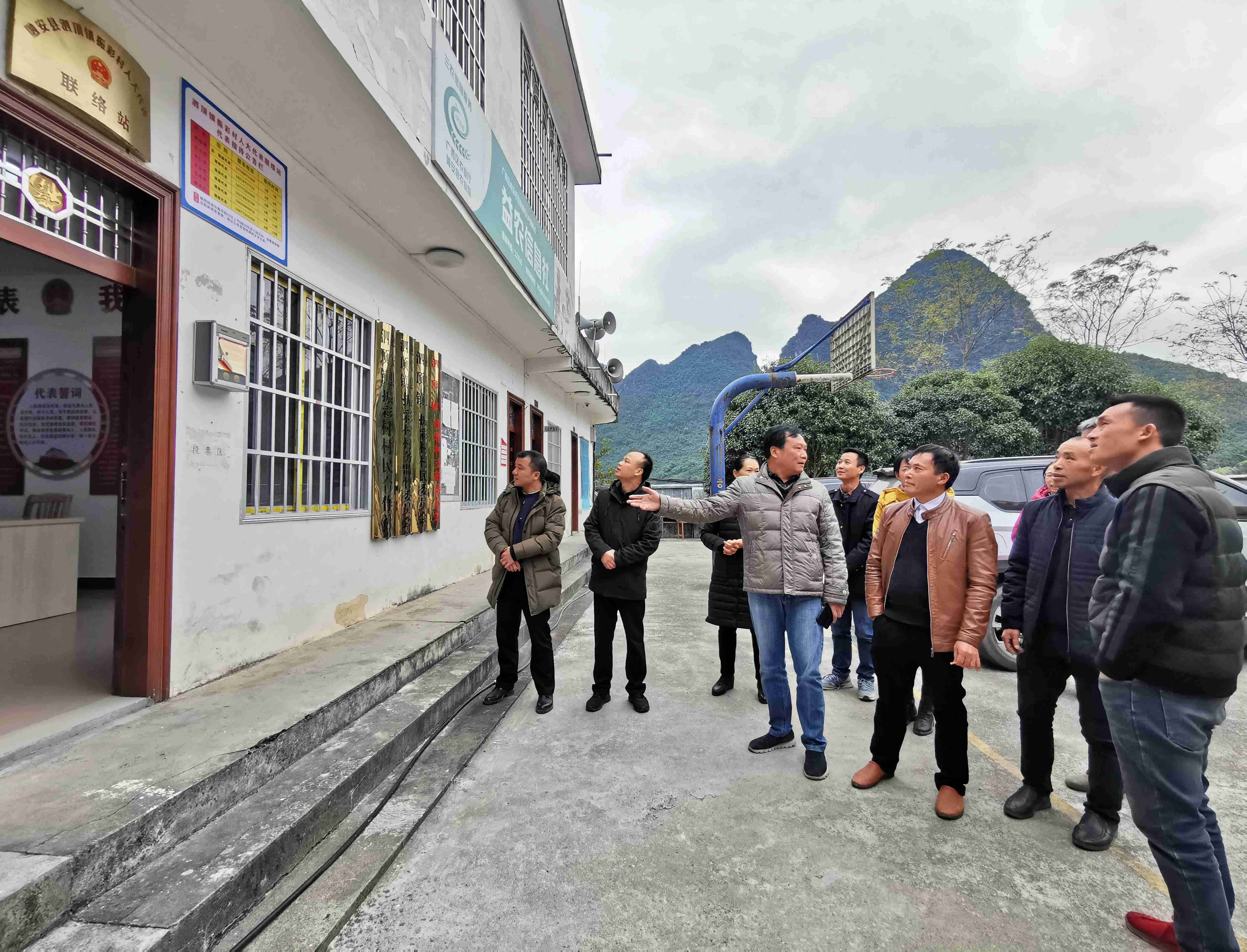 12月3日,在融安县泗顶镇振彩村村委,选区人大代表参观了解联络站运行情况。(刘梁春 摄)