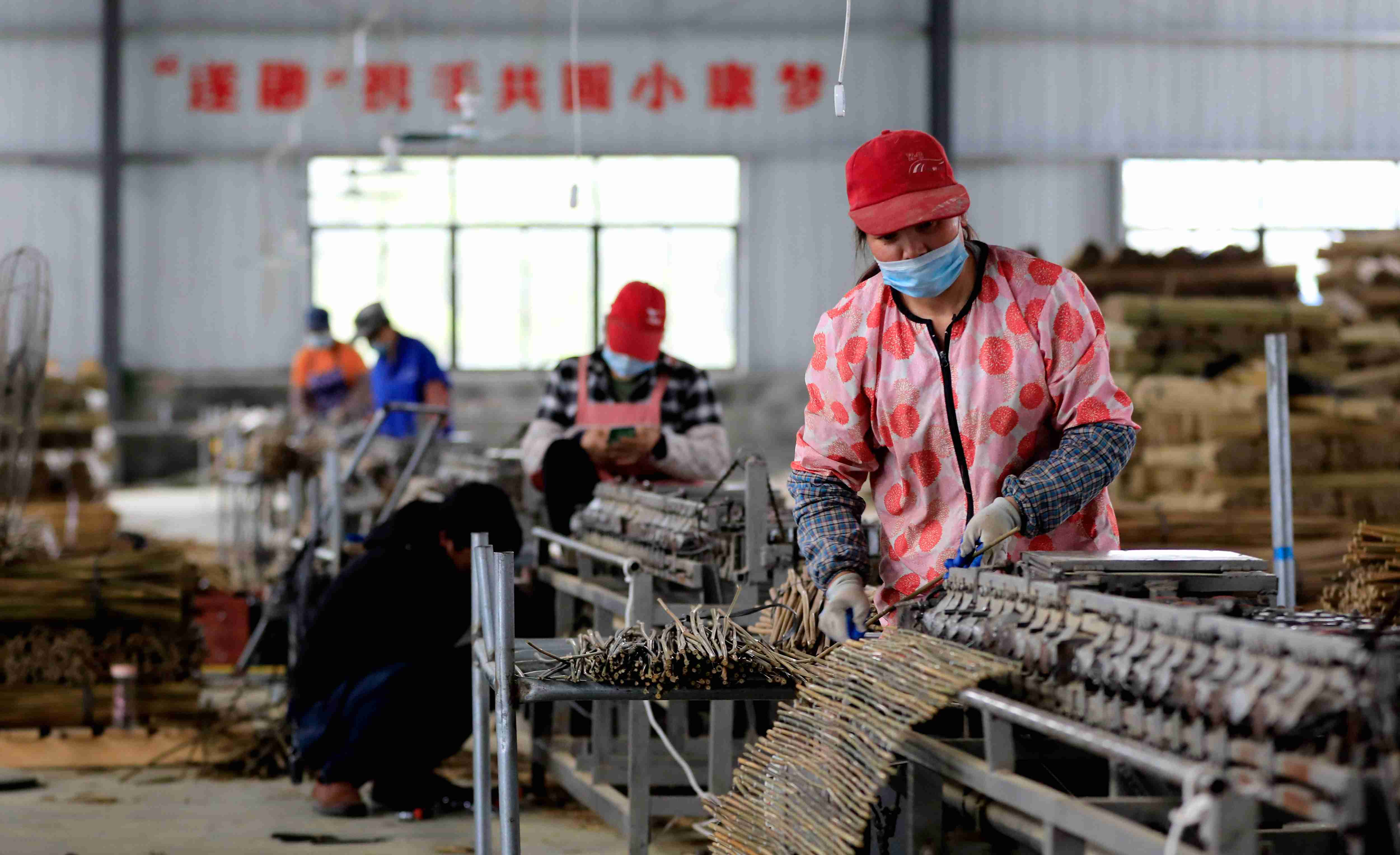 4月7日,在融安县融嘉工艺有限公司,工人们在生产线上劳作。遂溪—融安两县结对帮扶以来,融安县以“粤桂协作”为契机,吸收和利用发达地区资金与技术,结合当地人力资源和原材料产地优势,带动5家粤企在融安投资设厂、拓宽产销对接和消费扶贫渠道,促进全产业链条融合发展,带动当地群众就业增收,助力产业兴旺和乡村振兴。