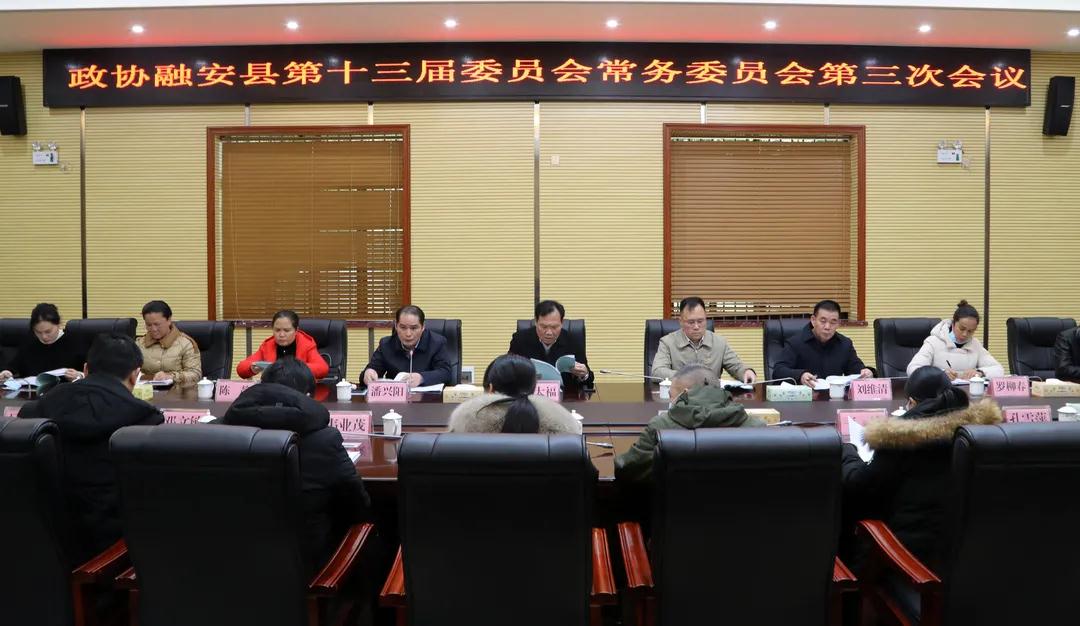 1月17日,政协融安县第十三届委员会常务委员会第三次会议在县会议中心第一会议室召开,县政协主席梁太福出席会议并讲话,县委常委、统战部部长、县政协党组副书记(兼)曾凡旺出席会议。