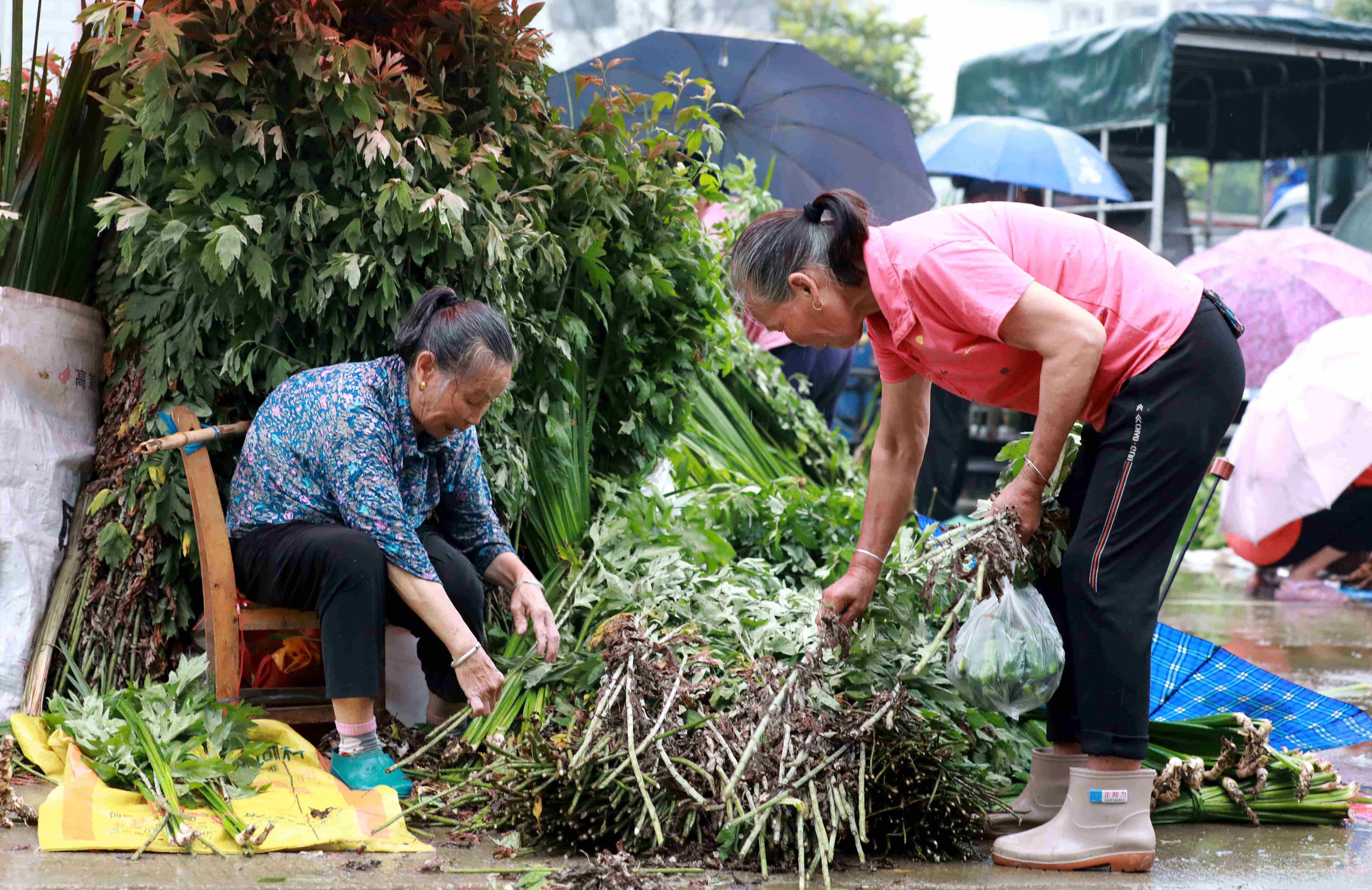6月3日,在融安县“端午药市”,市民在购买中草药。当日是中国传统节日“端午节”,融安县各族群众把从山上采集的中草药到“端午药市”上销售。据悉,当地民间有端午节在家门口插艾草、挂菖蒲辟邪祛秽的传统习俗,当地壮族、苗族、瑶族等各族群众纷纷购买艾草和菖蒲等中草药插在各自的家门口,空气中弥漫着艾草和菖蒲的浓郁清香。