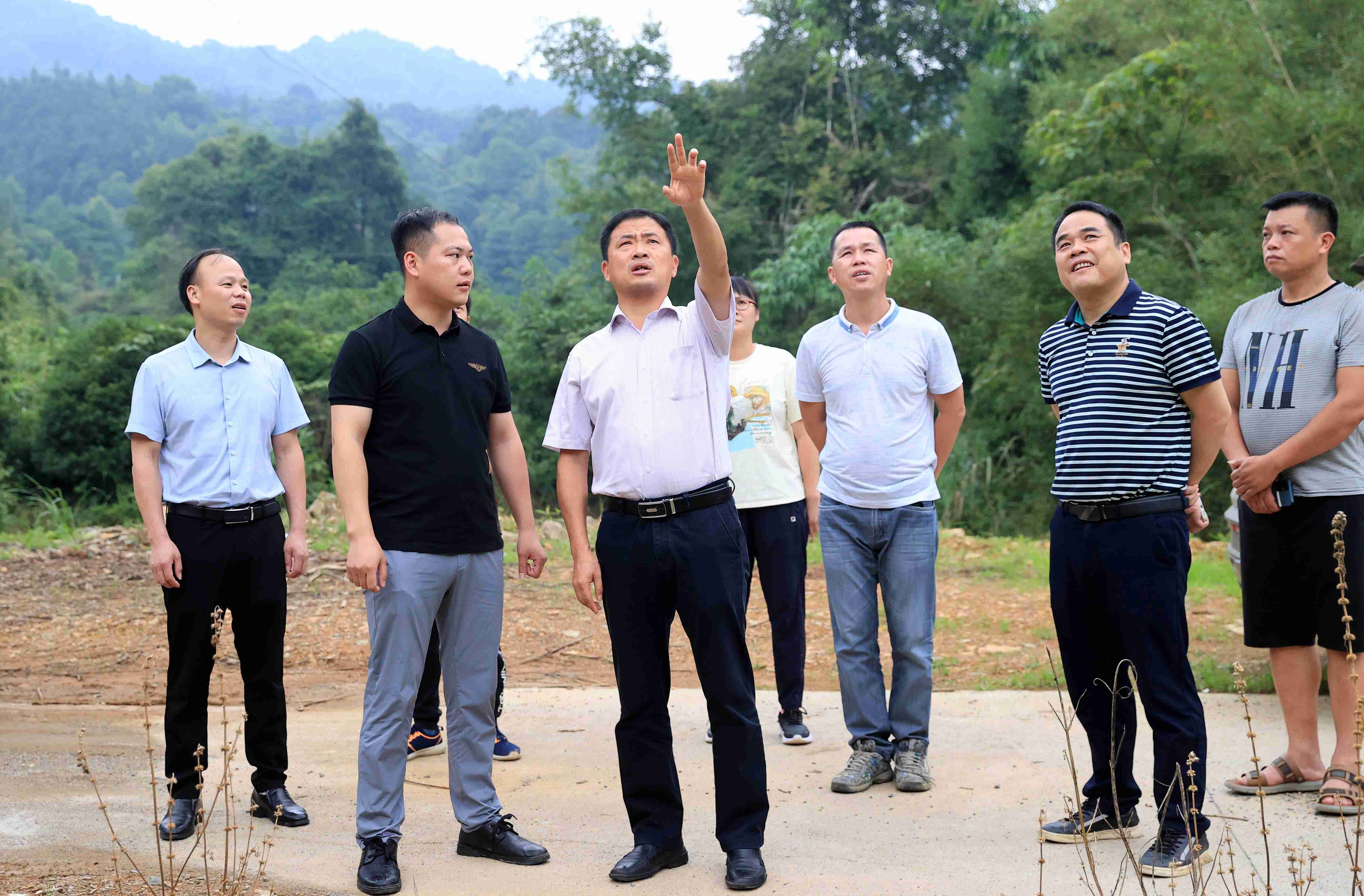 6月10日,在融安县大将镇大华村,陈文敏(左三)一行实地查看地质灾害隐患点情况。(谭凯兴 摄)