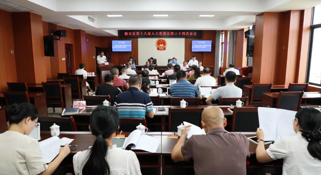 会议听取和审议《融安县2025年重大项目建设工作情况报告》《融安县2024年度全口径债务情况的专项报告》《融安县监察委员会关于整治群众身边不正之风和腐败问题工作情况的报告》《融安县人大常委会调研组关于全县现代设施农业发展情况的调研报告》《融安县人大常委会调研组关于加强乡村医疗卫生事业发展的调研报告》《推动工业经济高质量发展不断夯实融安“农转工”产业基础》的报告、《融安县人民法院执行工作报告》,表决通过《融安县第十八届人民代表大会常务委员会关于接受杨丽洁辞去融安县第十八届人民代表大会代表职务的决定》,以及相关人事任免。新任职人员作供职表态发言,领取任命书。