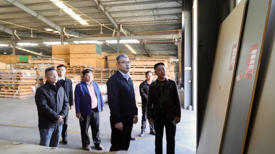 11月21日,县委书记于福坚(前右二)在融安县祥源木业有限公司调研指导企业安全生产工作。(方淑敏 摄)