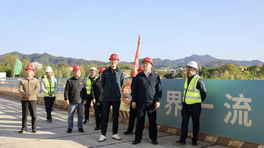 11月21日,县委书记于福坚(前右二)在融福高速1标段融江特大桥建设现场调研指导企业安全生产工作。(方淑敏 摄)