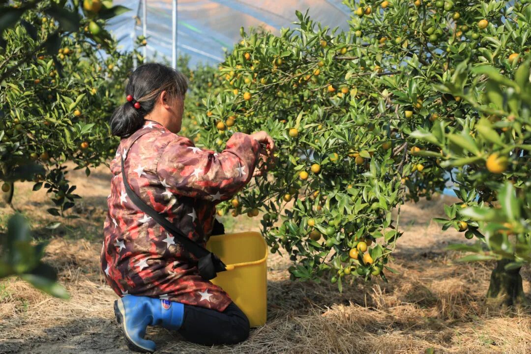 11月21日,在融安县大将镇大潭金桔种植基地,果农正在采摘金桔。(夏有清 摄)