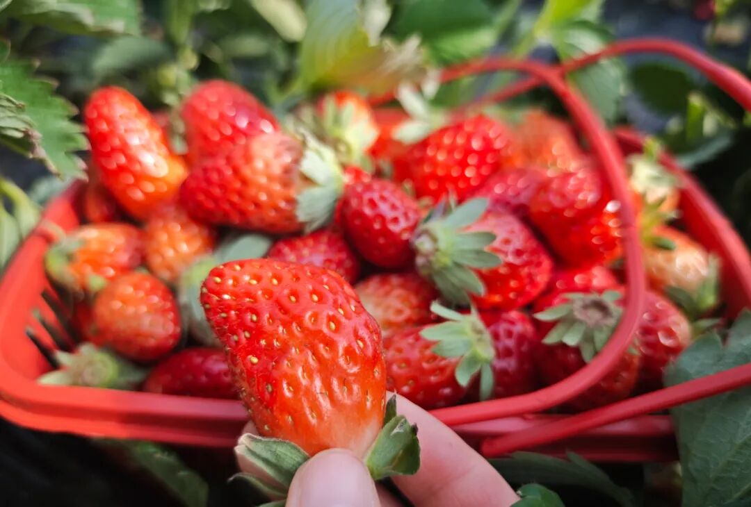 草莓园营业至明年3月底,无论是周末遛娃、好友小聚,还是全家出游,来这儿都合适!钻进绿意满盈的大棚,亲手摘颗红彤彤的草莓,咬一口酸甜爆汁,满是治愈人心的幸福感。