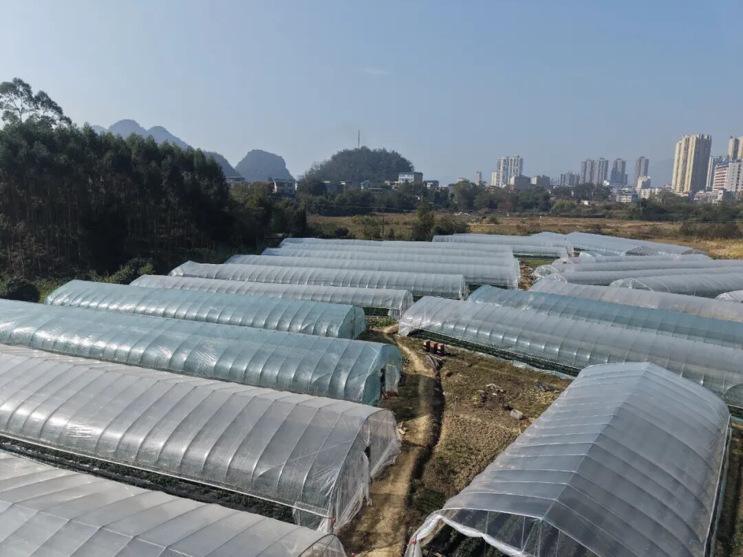 融安县长安镇大乐村草莓园航拍图。(夏志远 摄)
