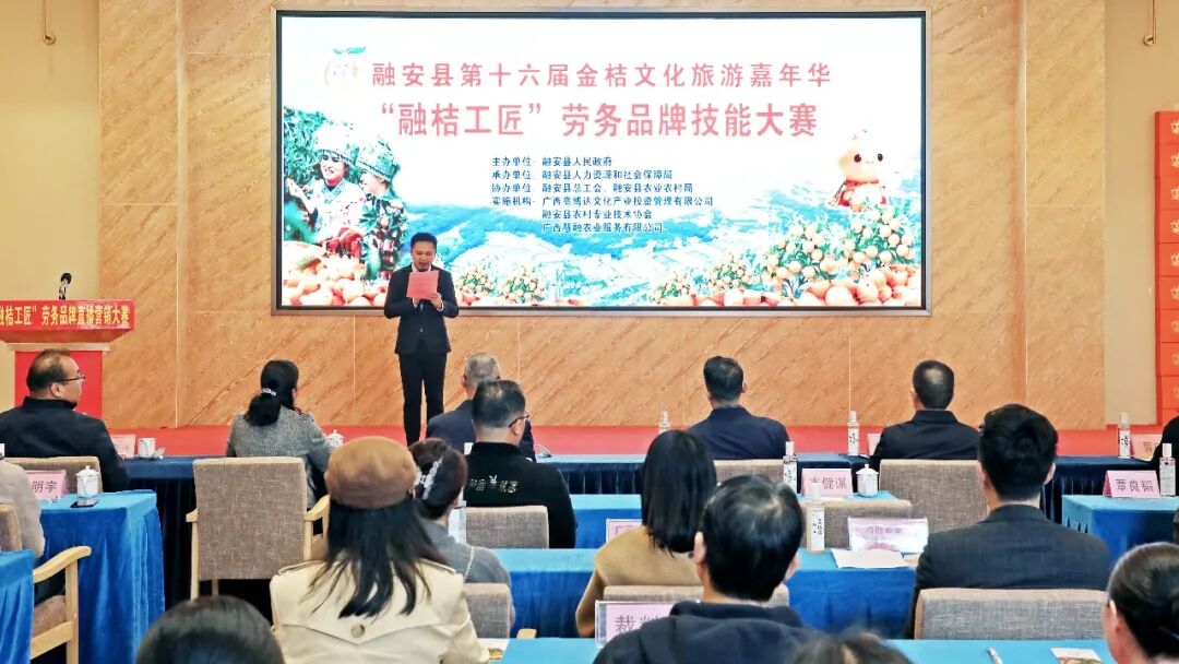 12月17日,在融安县第十六届金桔文化旅游嘉年华系列活动之“融桔工匠”劳务品牌技能大赛上拍摄的开幕式现场。(邓西妮 摄)