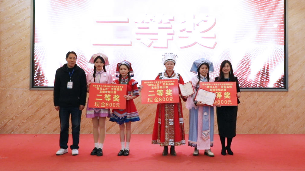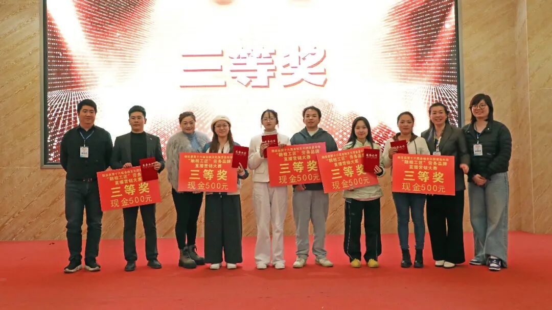 12月17日,在融安县第十六届金桔文化旅游嘉年华系列活动之“融桔工匠”劳务品牌技能大赛现场,获得二等奖的参赛选手合影。(邓西妮 摄)