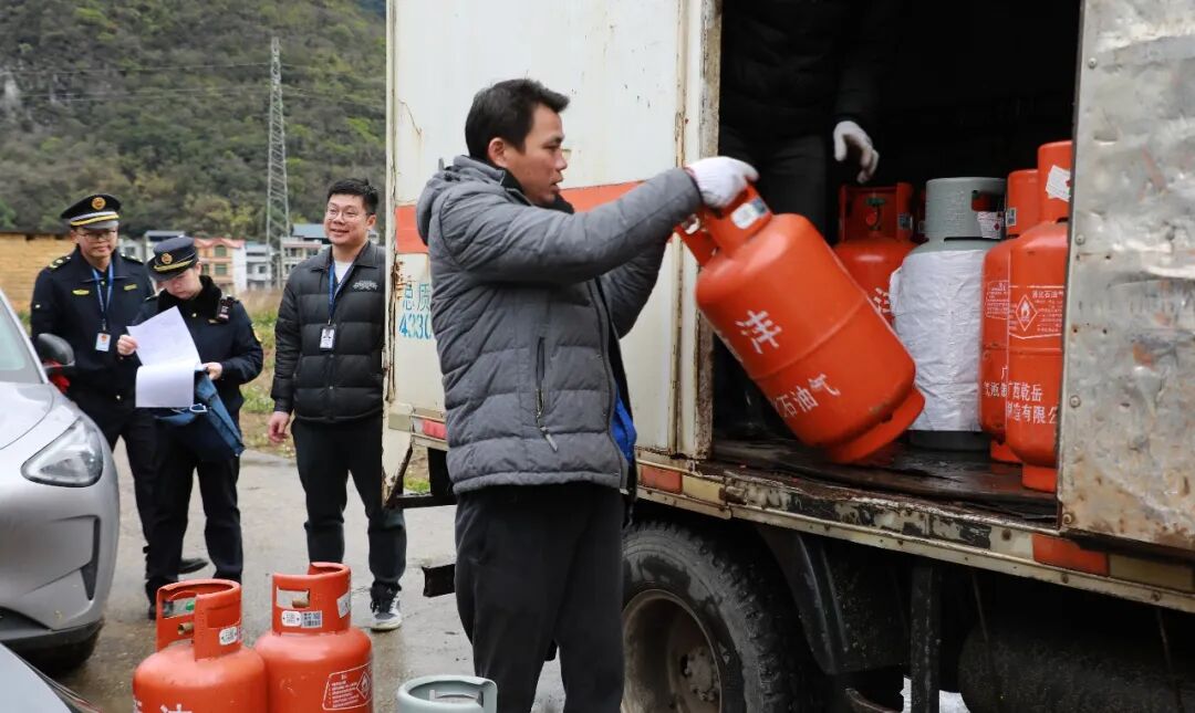 2月10日拍摄的融安县燃气安全联合检查行动现场。(覃嘉鑫 摄)