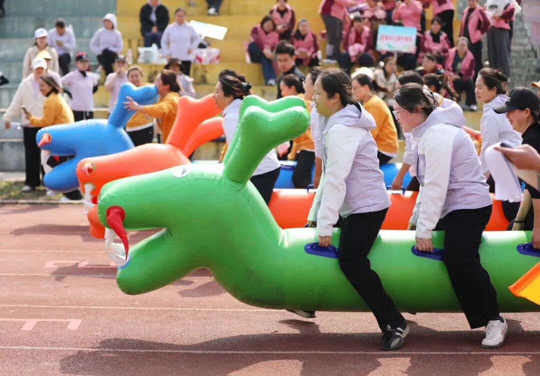 本次运动会紧扣“团结、健康、快乐、向上”主题,兼具趣味性与协作性,精心设置旱地龙舟、背篓抛绣球、同心鼓等多个特色项目。比赛现场气氛热烈、欢声笑语不断,参赛女同胞们精神饱满、默契配合,在比拼中展现速度、在互动中增进情谊,充分展现出融安女性自信自强、团结奋进、乐观向上的巾帼风采。加油声、欢呼声、掌声此起彼伏,将节日氛围推向高潮。