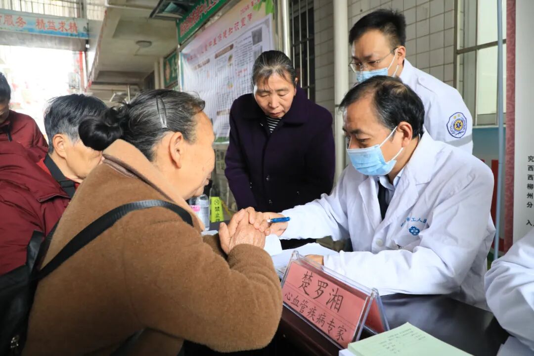 “以前想看个专家号,要跑到县城或柳州,费时费力。今天博士专家直接来镇上义诊,免费测血压血糖,不仅看得仔细、讲得明白,用药也教得清楚,太贴心了!希望以后这样的活动可以多来,让我们看病更省心、更安心。”板榄参加义诊的韦大哥激动地说道。3月17日,柳州市工人医院驻融安县中医医院“博士工作站”成立一周年活动暨基层服务行义诊活动现场。(夏有清 摄)