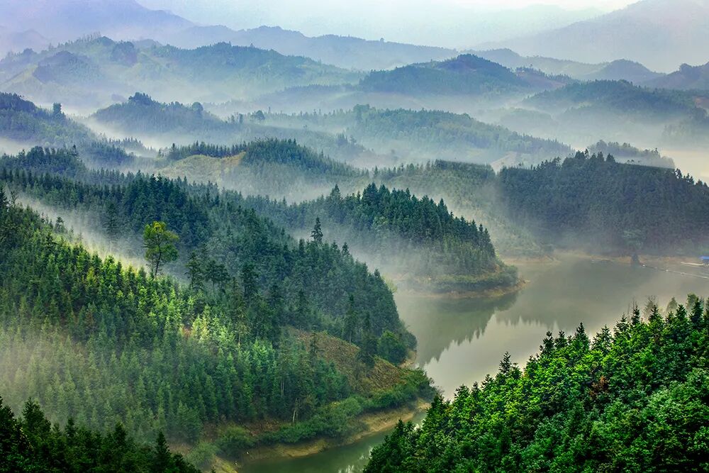 香杉林如一幅淡墨的山水画;