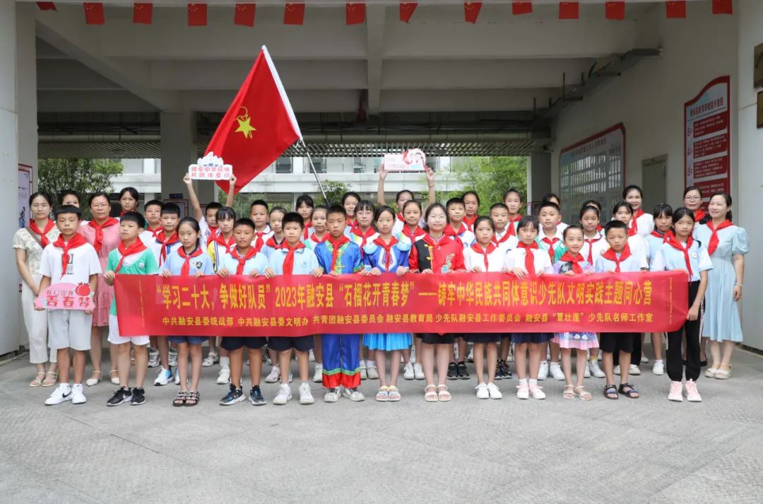 8月2日,融安县开展“学习二十大 争做好队员”2023年融安县“石榴花开青春梦”——铸牢中华民族共同体意识少先队文明实践主题同心营活动,进一步增强全县各族青少年爱国情怀,铸牢中华民族共同体意识,激励广大青少年为实现中华民族伟大复兴的中国梦而努力奋斗。