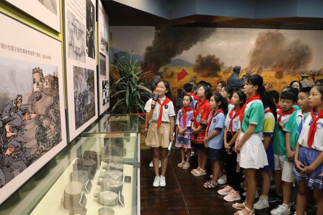 8月2日,在融安县“红七军”战长安纪念馆,少先队员在听讲解员介绍。(杨曼 摄)