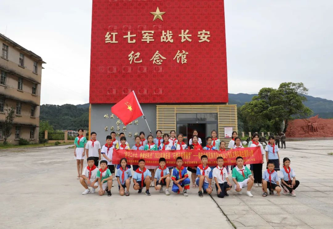 8月2日,少先队员在融安县“红七军”战长安纪念馆前合影留念。(杨曼 摄)