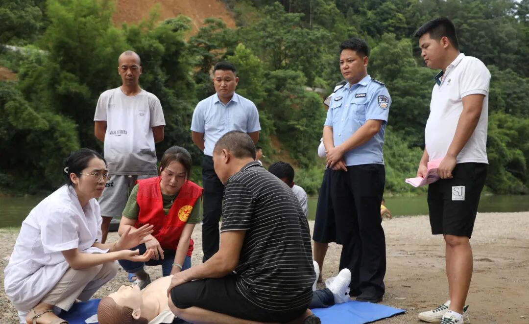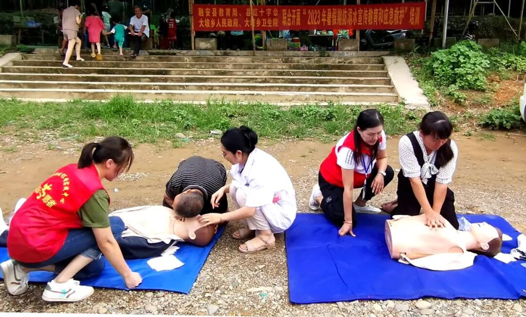 为预防溺水事故发生,提高群众安全防范意识和自救能力,8月2日,融安县教育局、县红十字会、大坡乡人民政府、大坡乡卫生院、大坡派出所联合开展2023年暑期防溺水宣传教育和应急救护培训。