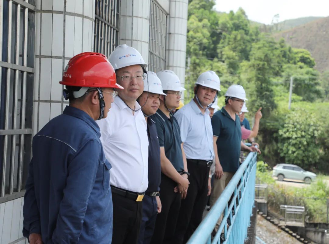 8月3日,在融安县浮石镇,柳州市人民政府副市长张国良(前右二)调研浮石船闸情况。融安县委常委、副县长叶海峰(前右三)陪同。(谢护香 摄)