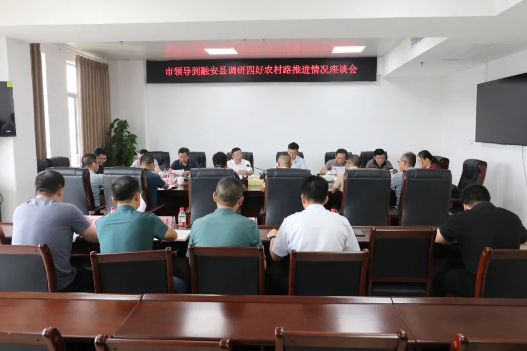 当天,督导组还到县商务中心11楼会议室听取融安县“四好农村路”工作推进情况汇报。张国良强调,随着农村公路工程的不断深入,各相关单位和部门要积极地把农村公路建设与其他项目结合,创新“农村公路+”融合发展新模式,加快完善农村路网、提升道路品质,推动农村公路高质量发展。