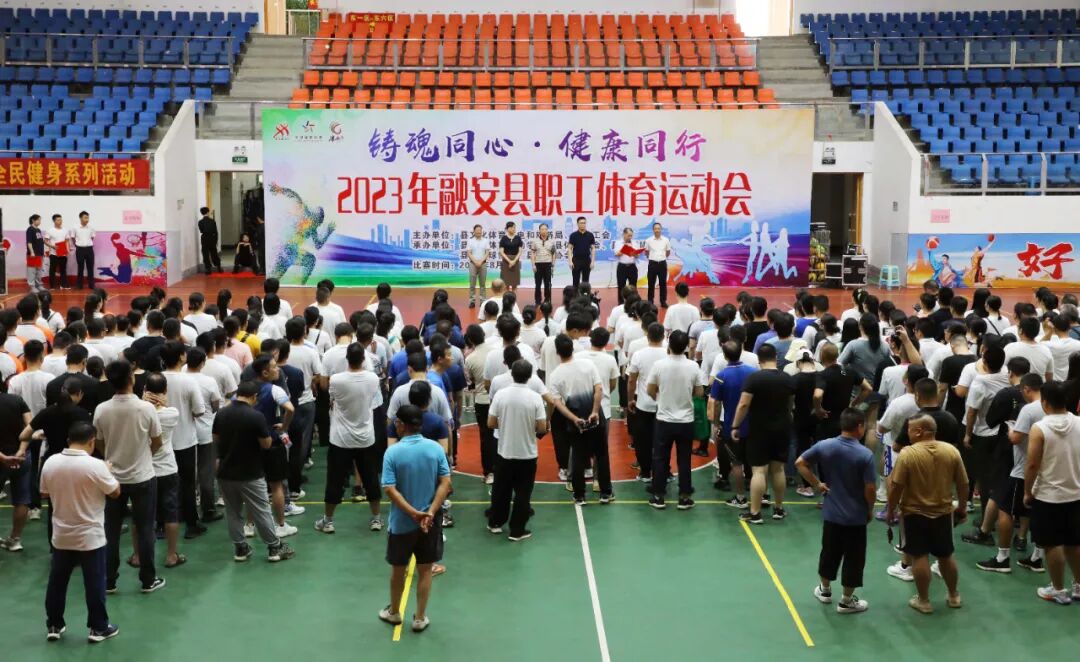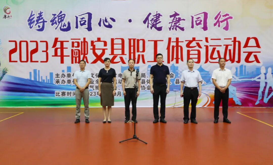 8月8日,“铸魂同心·健康同行”2023年融安县职工体育运动会开幕式在县文化体育中心举行,丰富干部职工业余体育文化生活,提升全民健身意识,推动职工文化建设和全民健身运动繁荣发展。县领导覃炳锋、莫小华、陶媚、潘兴阳出席开幕式。