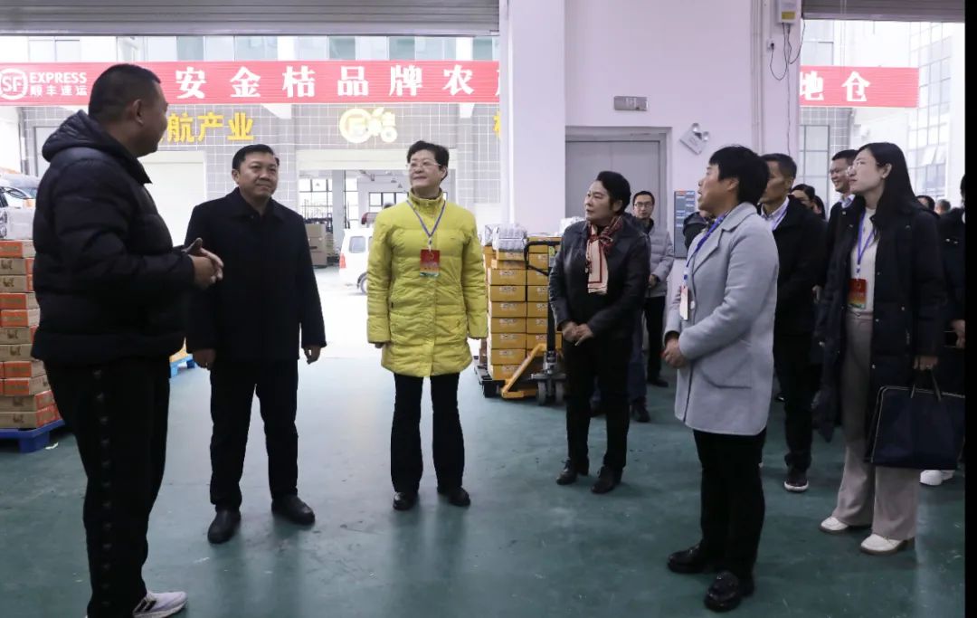 12月9日,三江县委书记贺莹(前左三)以市人大代表身份率队到广西融安桔乡里农业有限公司视察,融安县人大常委会主任肖素清(前左四)陪同视察。(覃嘉鑫 摄)