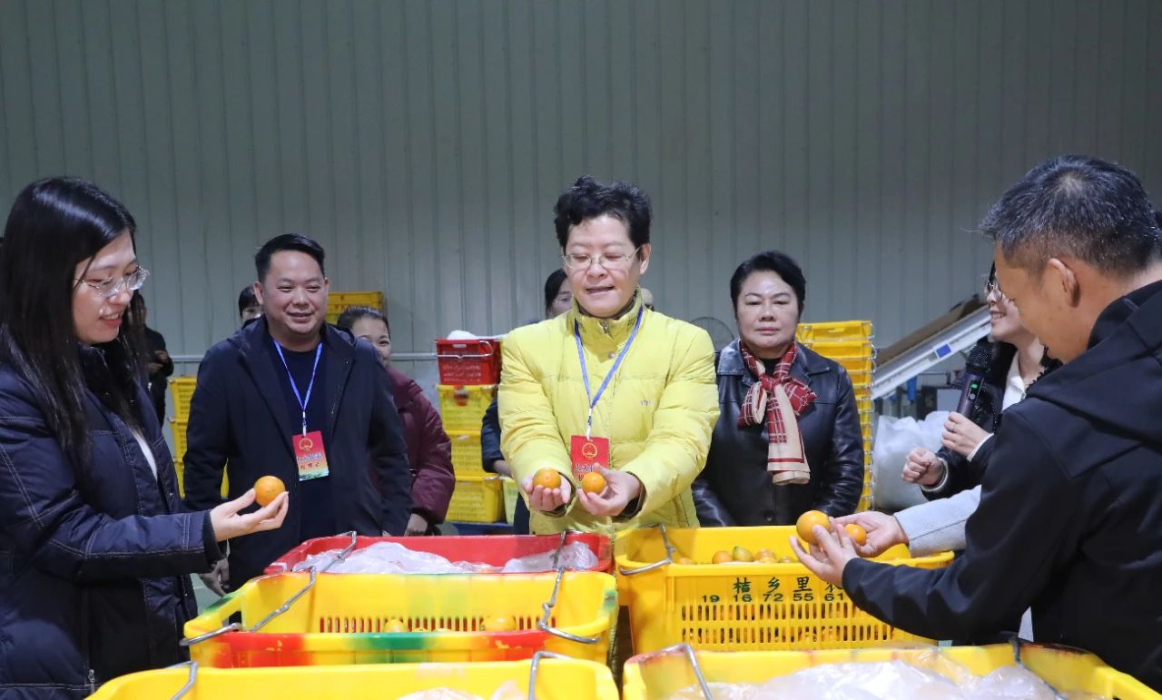 12月10日,柳州市第十五届人大代表(三江团)到融安金桔产业人大代表联络站视察。(覃嘉鑫 摄)