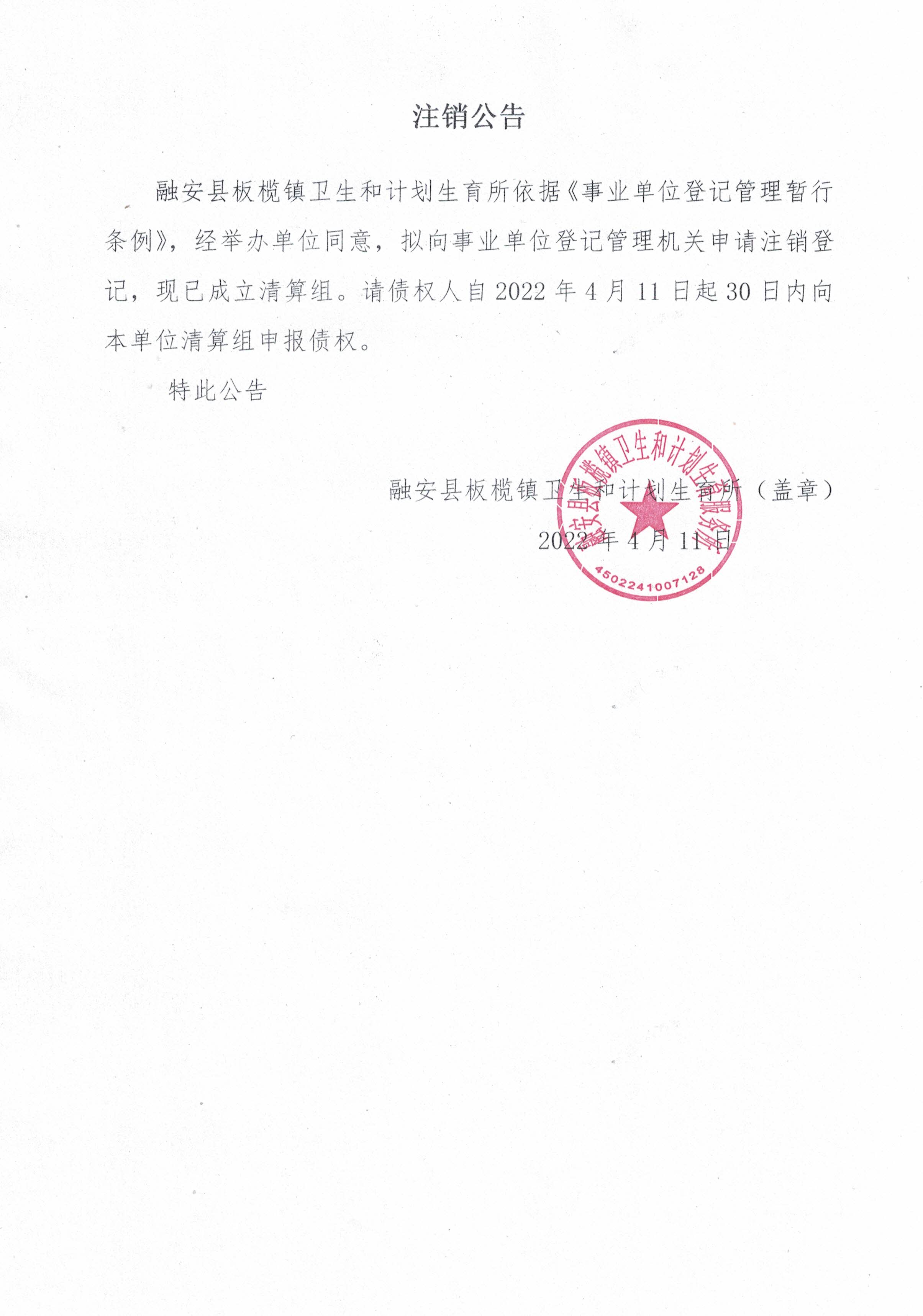 融安县板榄镇卫生和计划生育服务所第二次注销公告