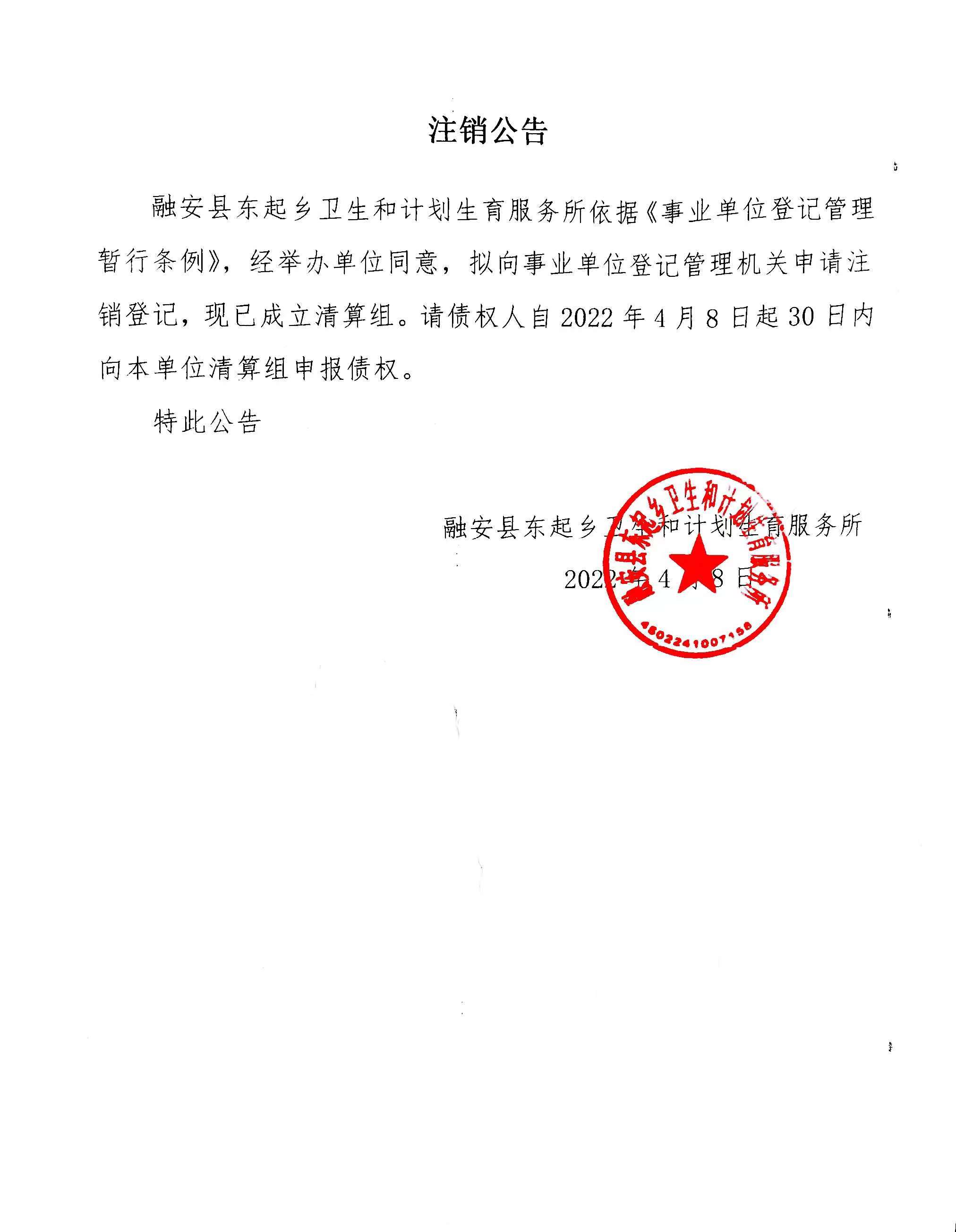 融安县东起乡卫生和计划生育服务所第二次注销公告