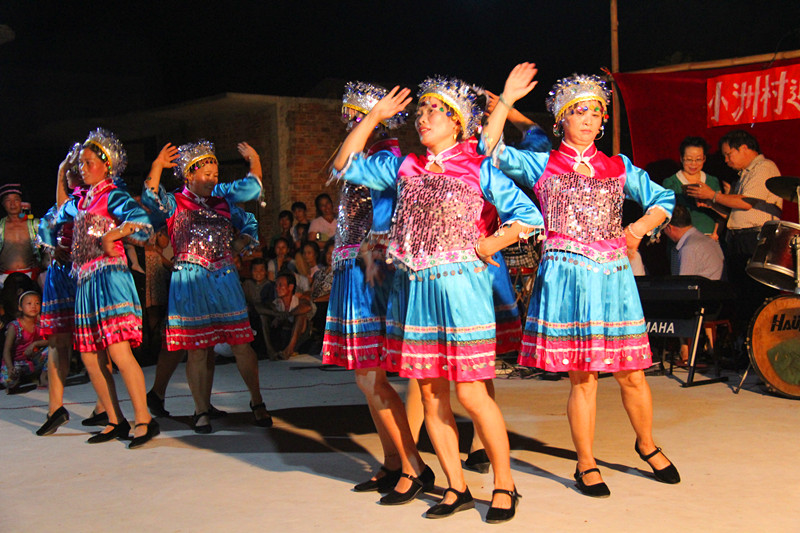 晚上七点半钟晚会正式开始,舞蹈《喜羊洋》拉开了晚会的序幕,优美的舞姿赢得了村民阵阵的掌声,晚会节目类型多种多样,都是各村村的村民自导自演。一曲《融安风光好》拉近了与村民之间的距离、彩调《四门花》吸引广大老年朋友的眼球、长安镇盘龙气功队张法宪表演的《钉床卧虎》,气功师赤身仰卧在布满尖利钢钉的钉床上,两位助手抬一块石板、三个火砖压在气功师身上,另一名助手抡起大锤将石板砸烂。而赤身的气功师躺在那里完好无损,令观众大饱眼福,大家囋囋称奇!晚会在广场舞《好日子》中落下帷幕,但现场的许多观众还沉浸在喜悦中,村民都希望小洲村能举办更多类似的活动,丰富大家的业余文化生活。