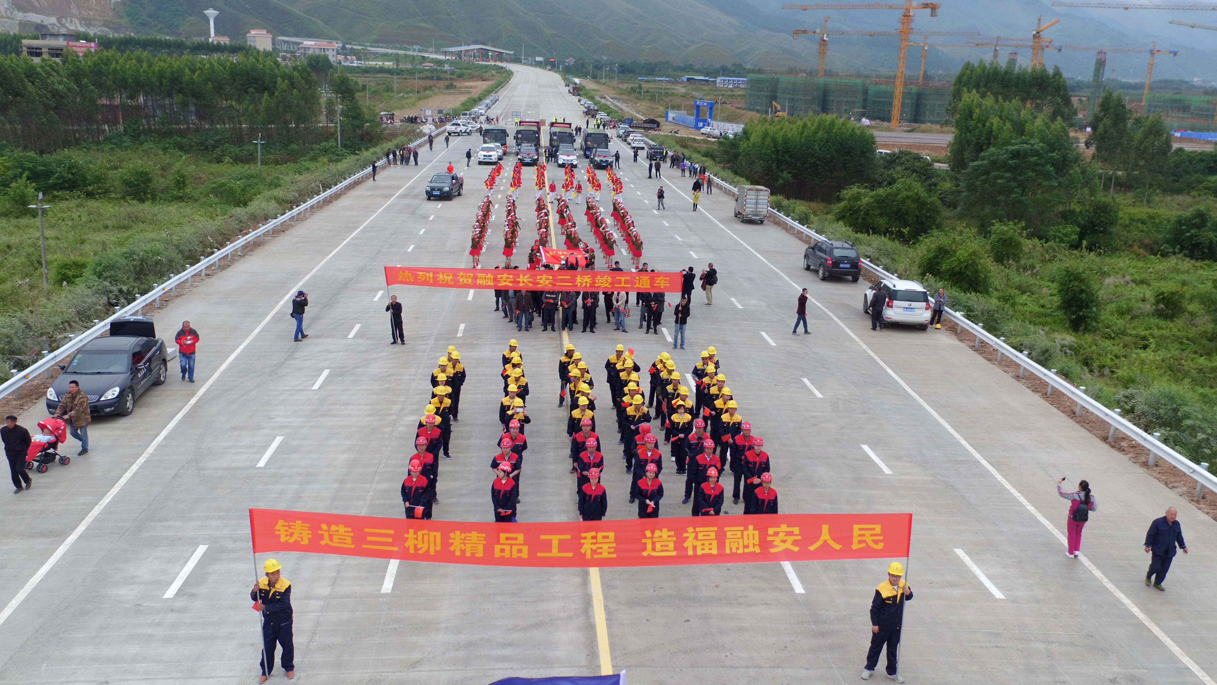 图3:10月18日,拍摄的三柳高速公路融安融江大桥竣工通车仪式现场。(谭凯兴 摄)