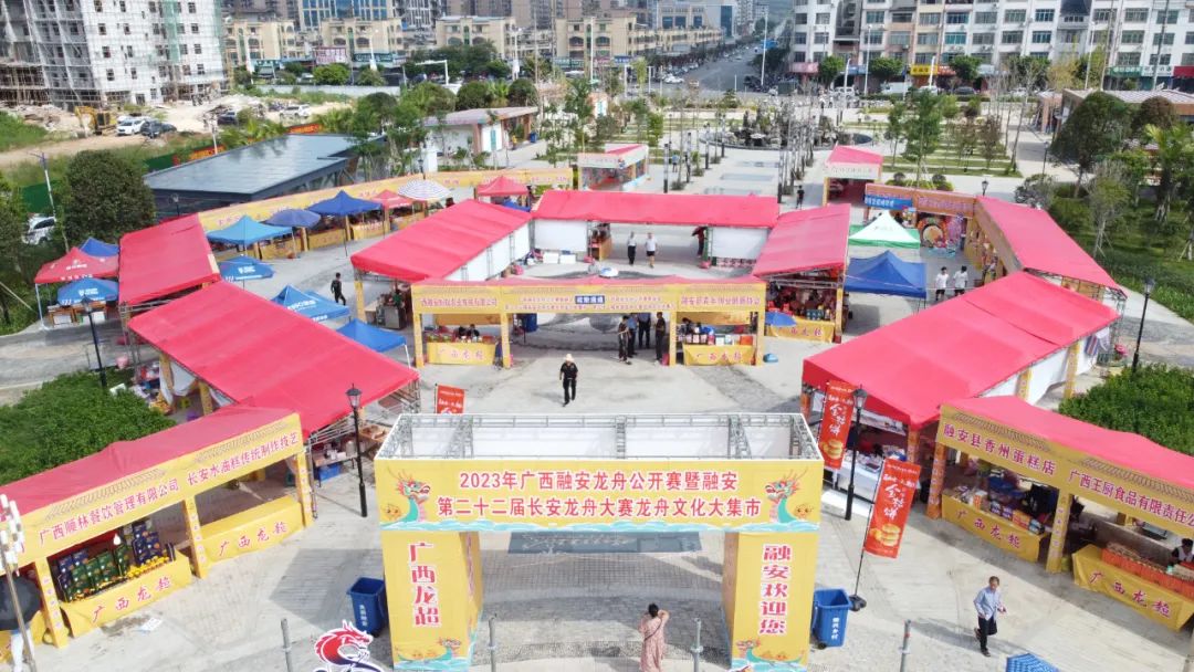 2023年广西融安龙舟公开赛暨融安第二十二届长安龙舟大赛于9月28日至30日在融安龙舟广场举行,伴随比赛开展的还有龙舟文化大集市、非遗民俗文化大游行、霓虹龙舟展示、音乐会等系列文化活动。9月28日,龙舟文化大集市在龙舟广场开市,金桔深加工产品、非遗美食、村集体经济产品等特色资源汇集一起,这个假期快来逛起!