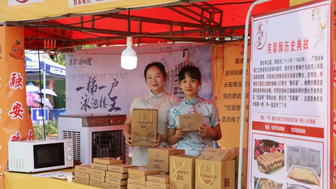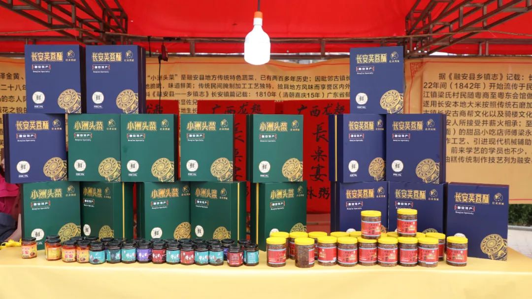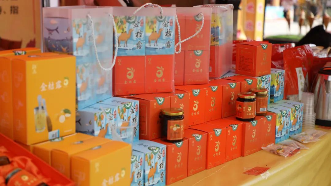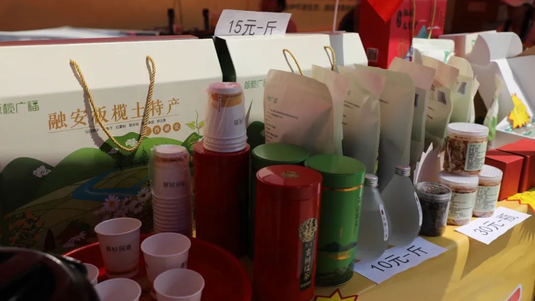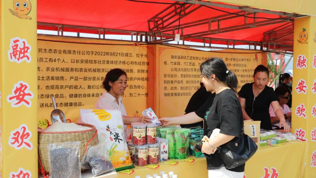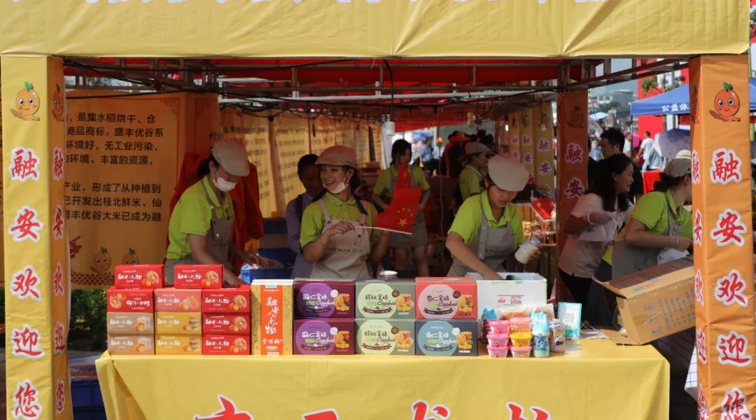 文化大集市共设置有融安金桔深加工暨地方农特优产品展销区、融安非遗美食展销区、村集体经济产品展销区、融安特色小吃展示区、网红直播带货区五大展区,各色各样的农特产品一字排开,每一处都有各自的亮点,来往的游客在了解融安金桔等特色农产品的同时,又可以感受融安非遗文化的魅力。